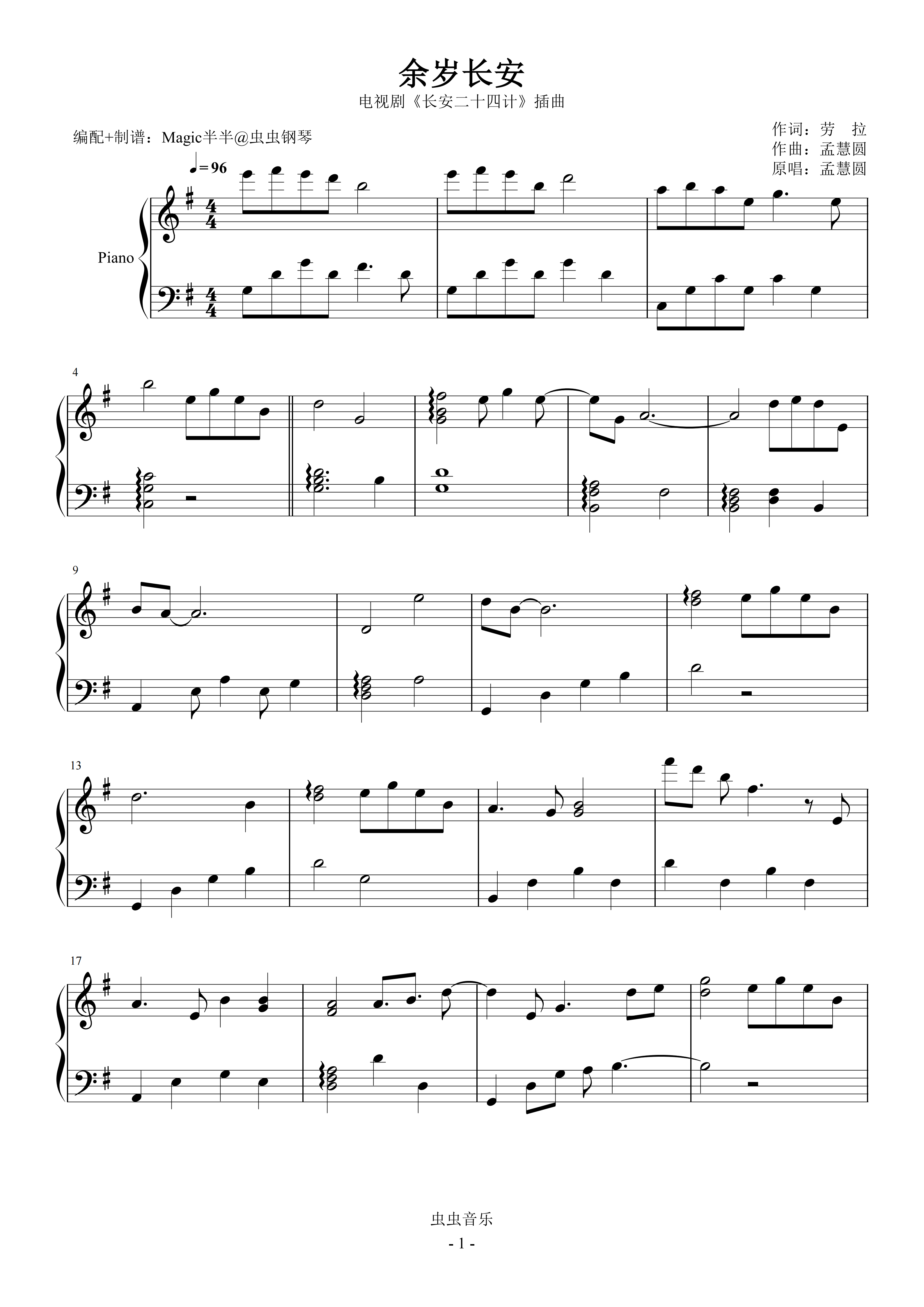 钢琴谱:余岁长安 <长安二十四计>电视剧插曲