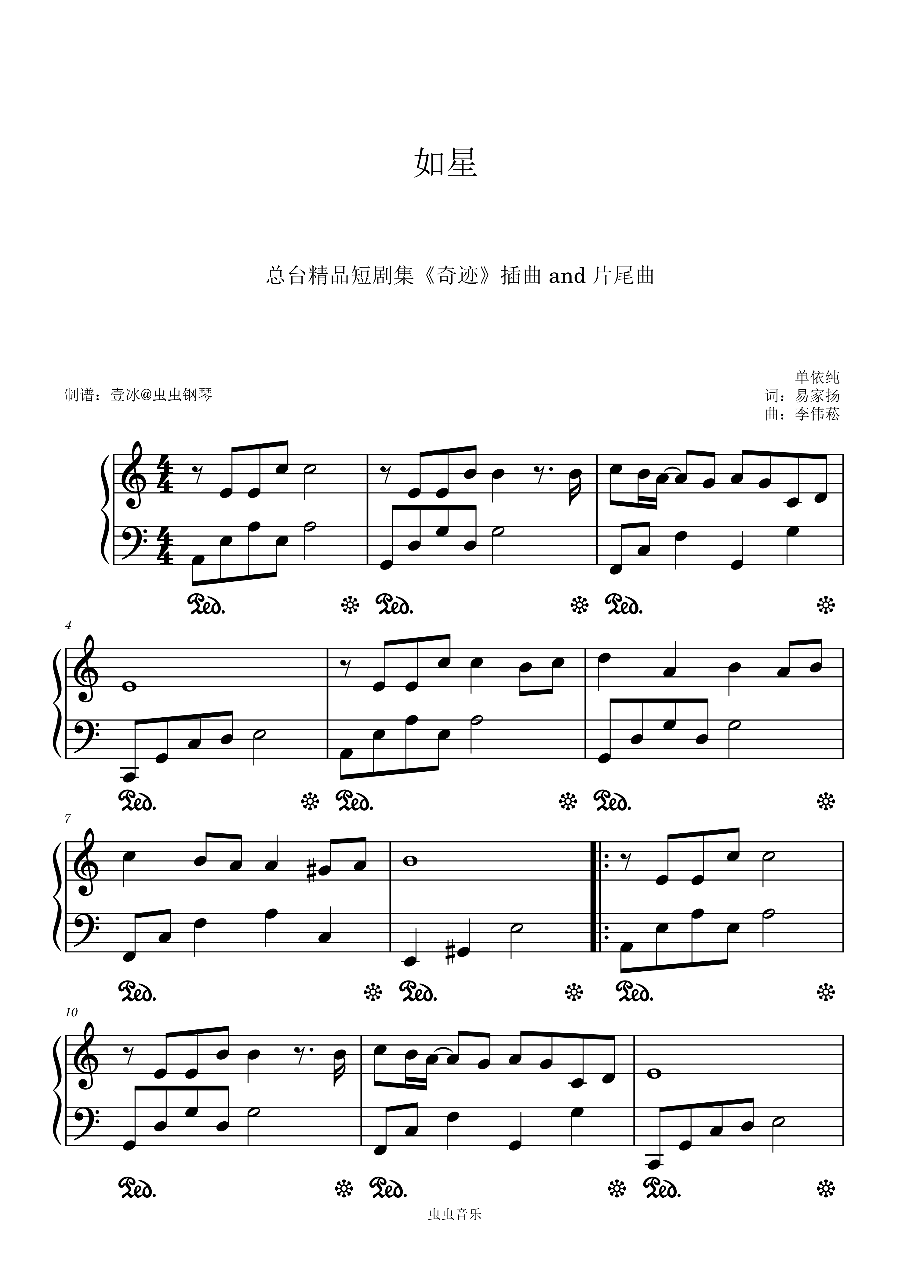 钢琴谱:如星 (总台精品短剧集《奇迹》插曲 and 片尾曲) - C调