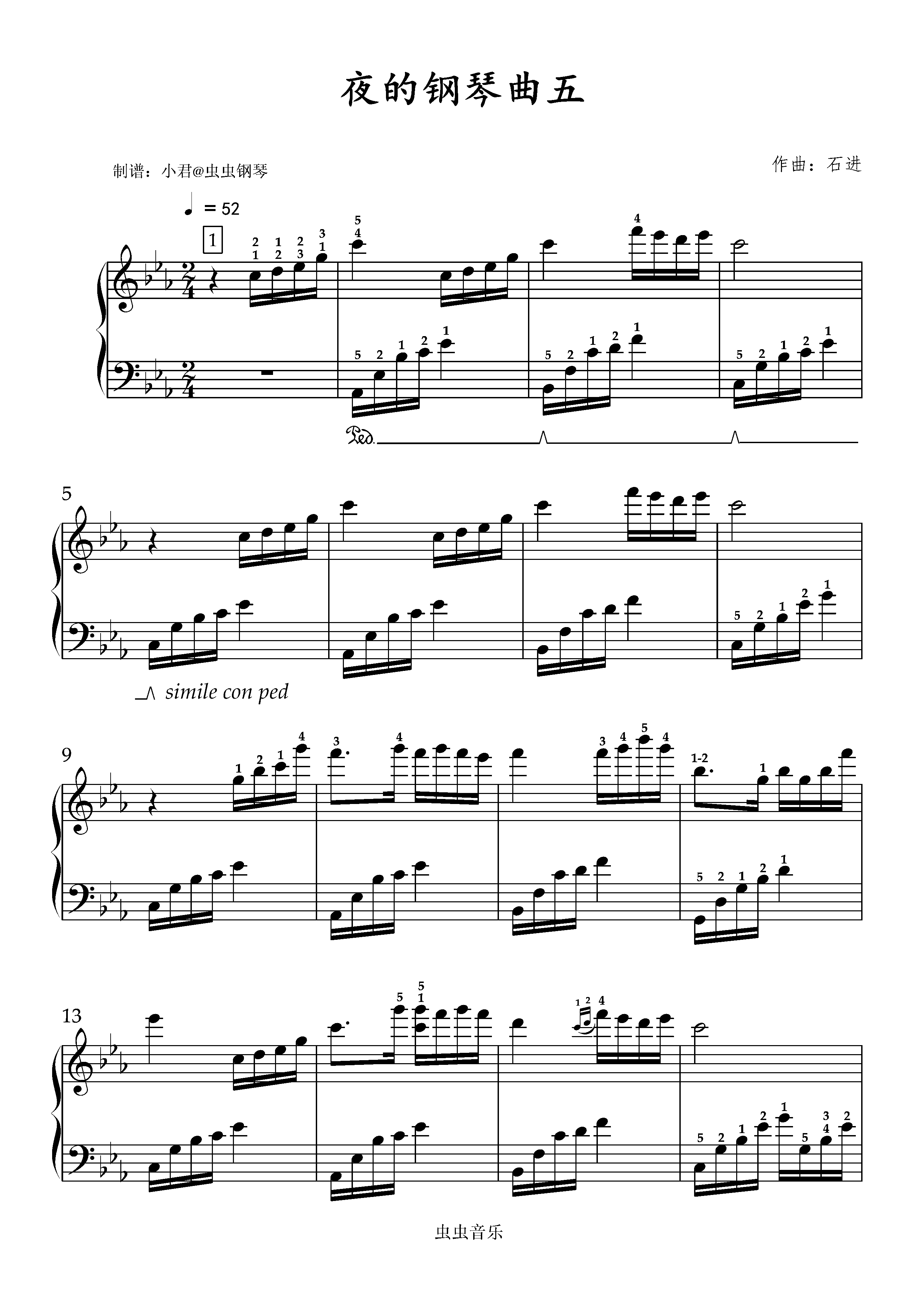 • 夜的钢琴曲 五钢琴简谱 C调 数字双手