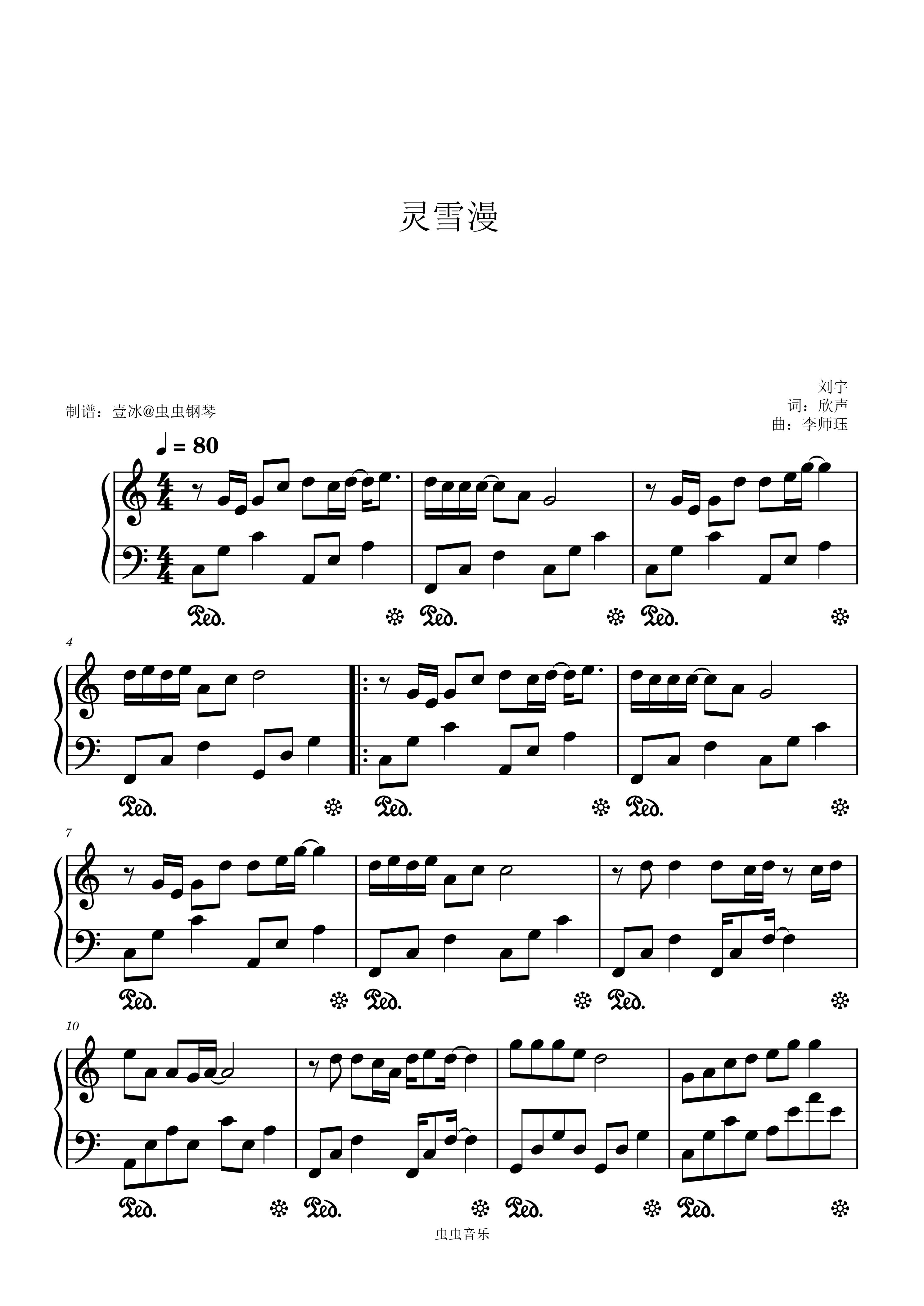 钢琴谱:灵雪漫 (新华社客户端新年祝福曲) - 刘宇 C调