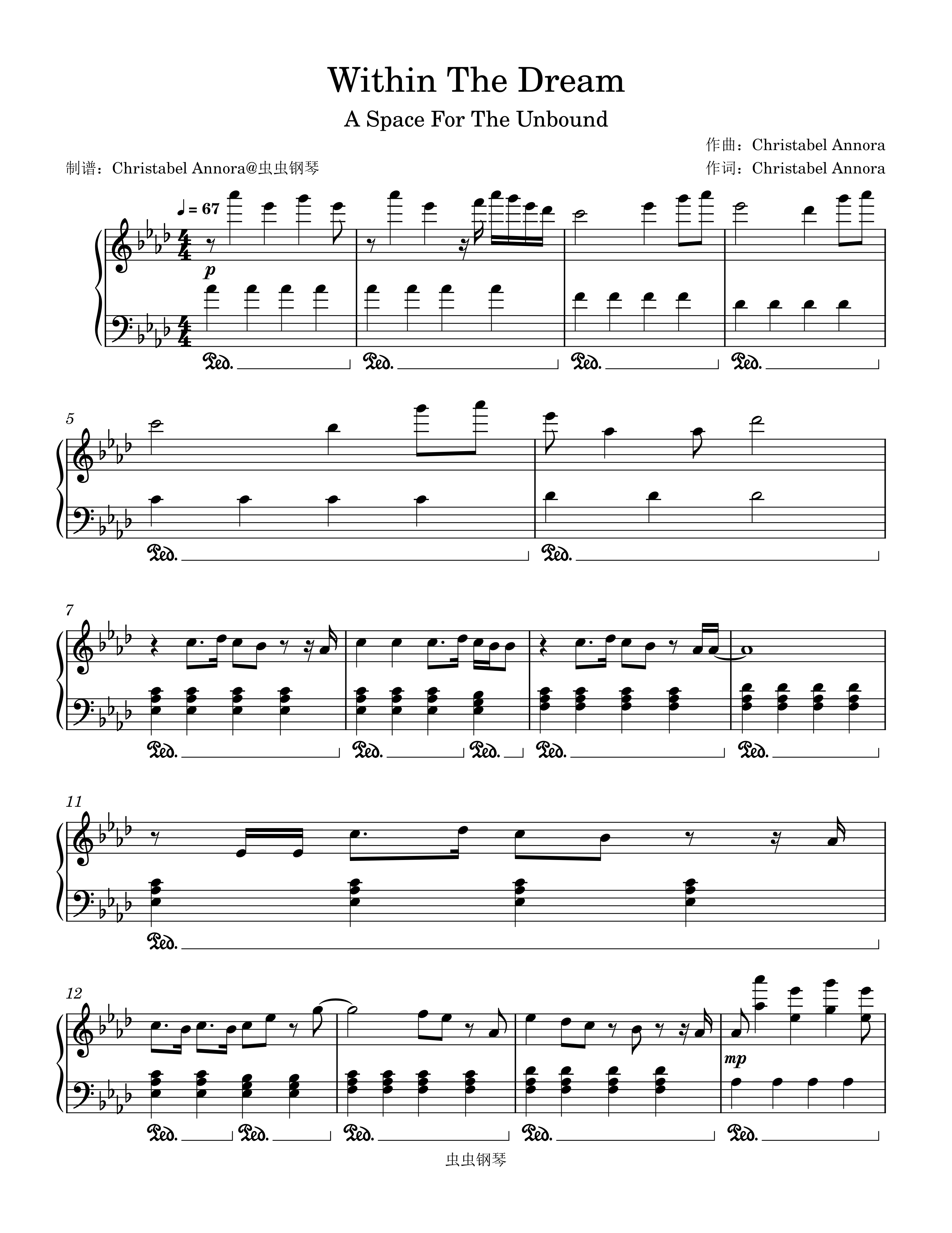 within the dream钢琴简谱 数字双手 Christabel Annora