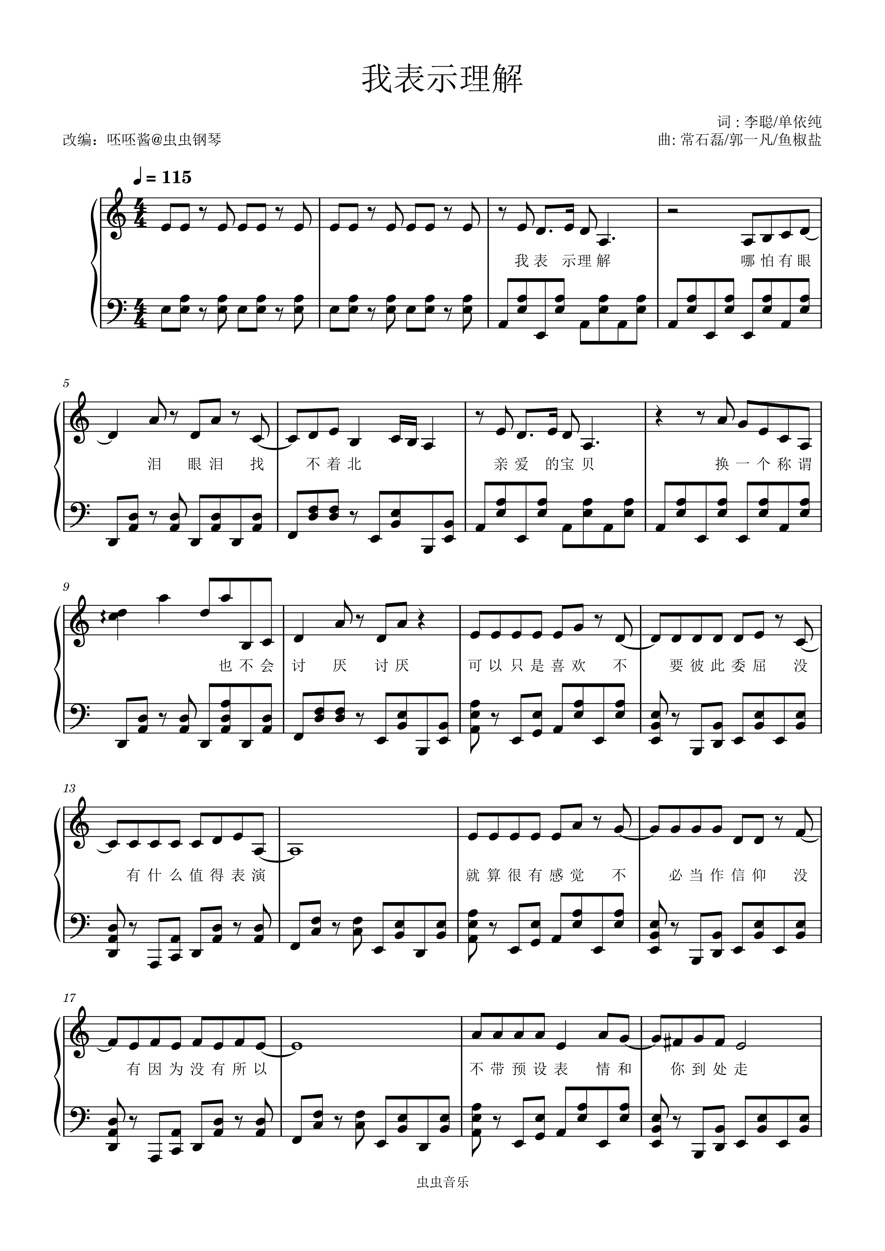 钢琴谱:我表示理解-单依纯-C调