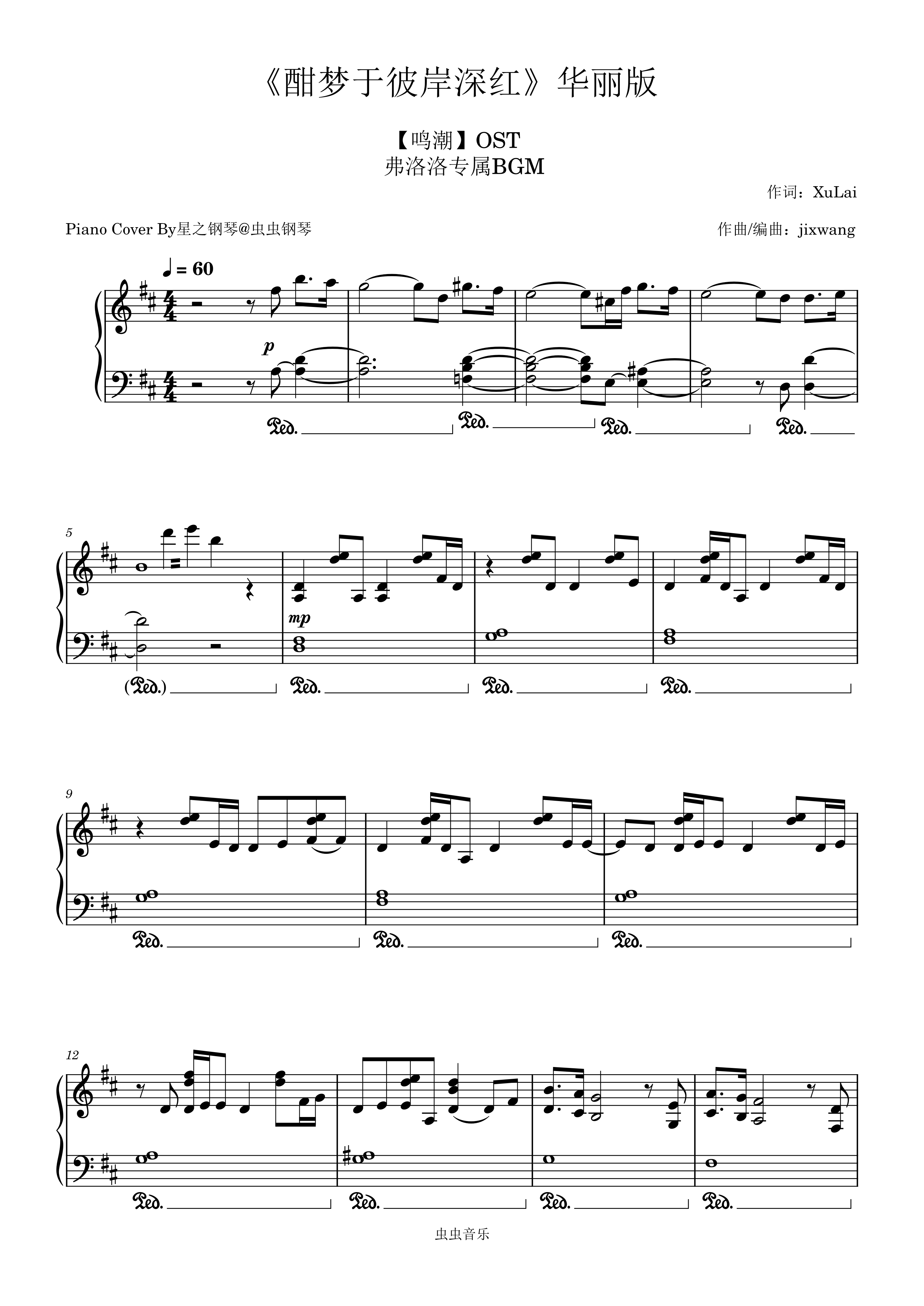 钢琴谱:【鸣潮】弗洛洛《酣梦于彼岸深红》钢琴华丽版~星之钢琴~