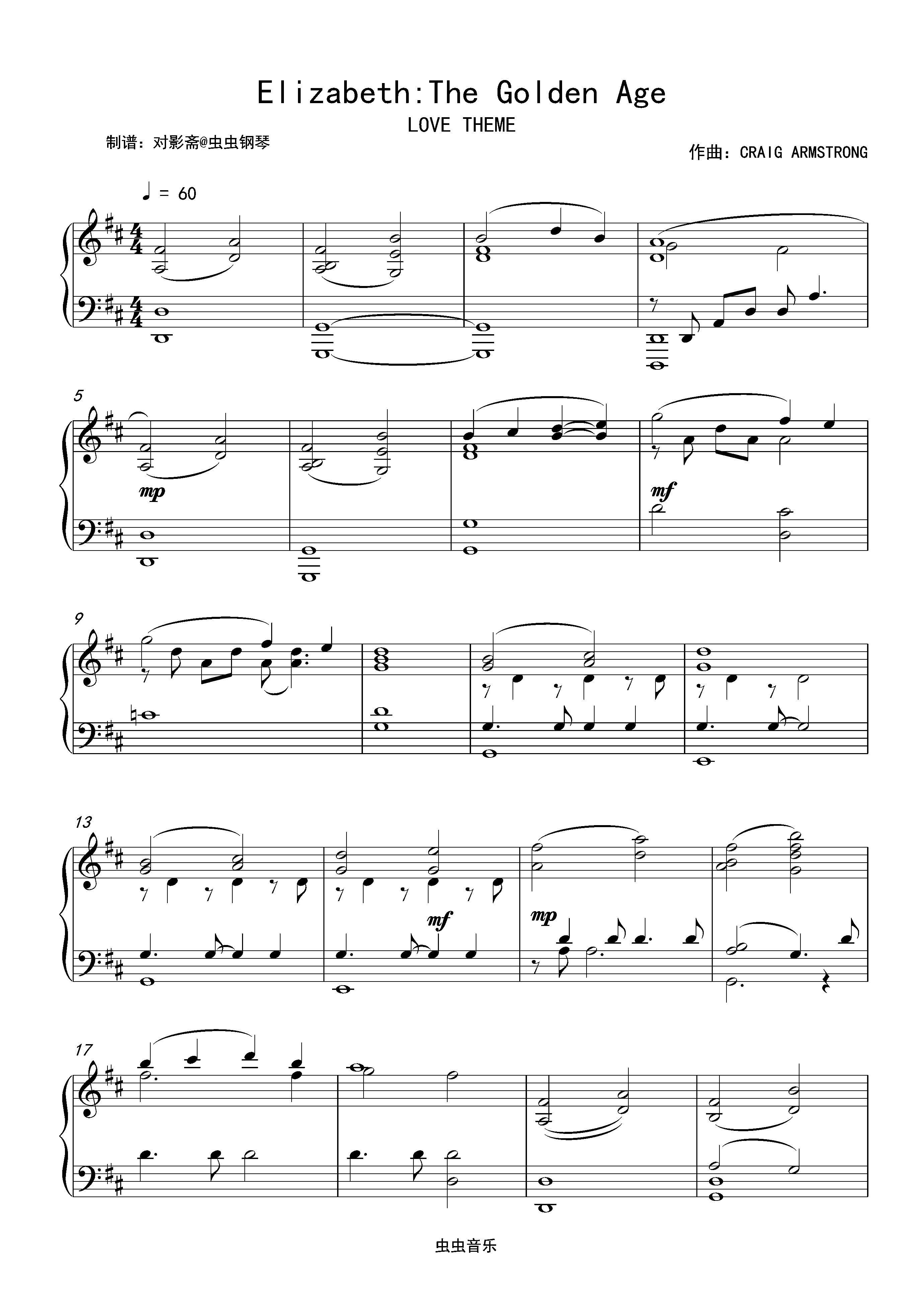 ELIZABETH: THE GOLDEN AGE钢琴简谱 数字双手