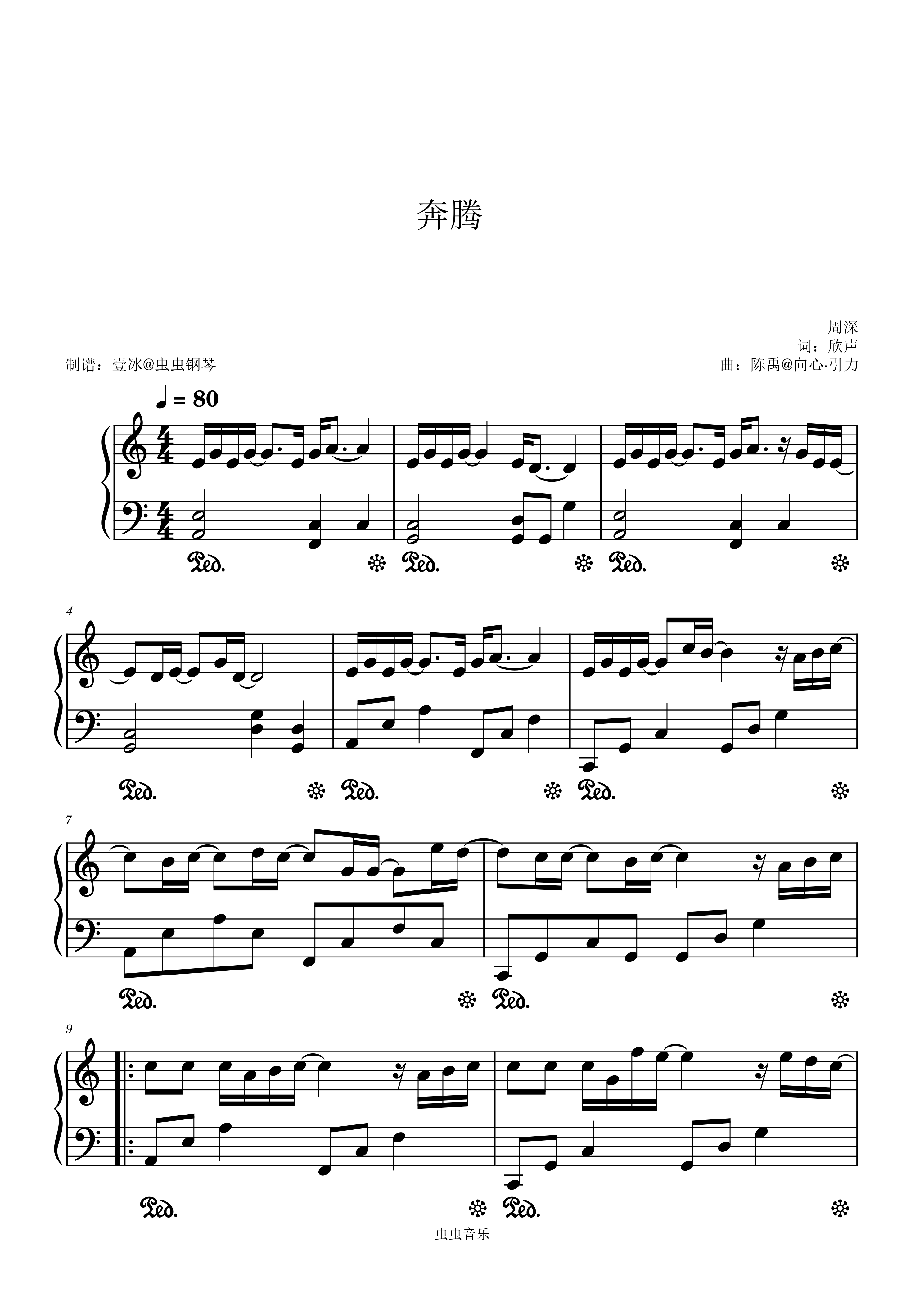 钢琴谱:奔腾 (人民日报新媒体新年主题曲) - 周深