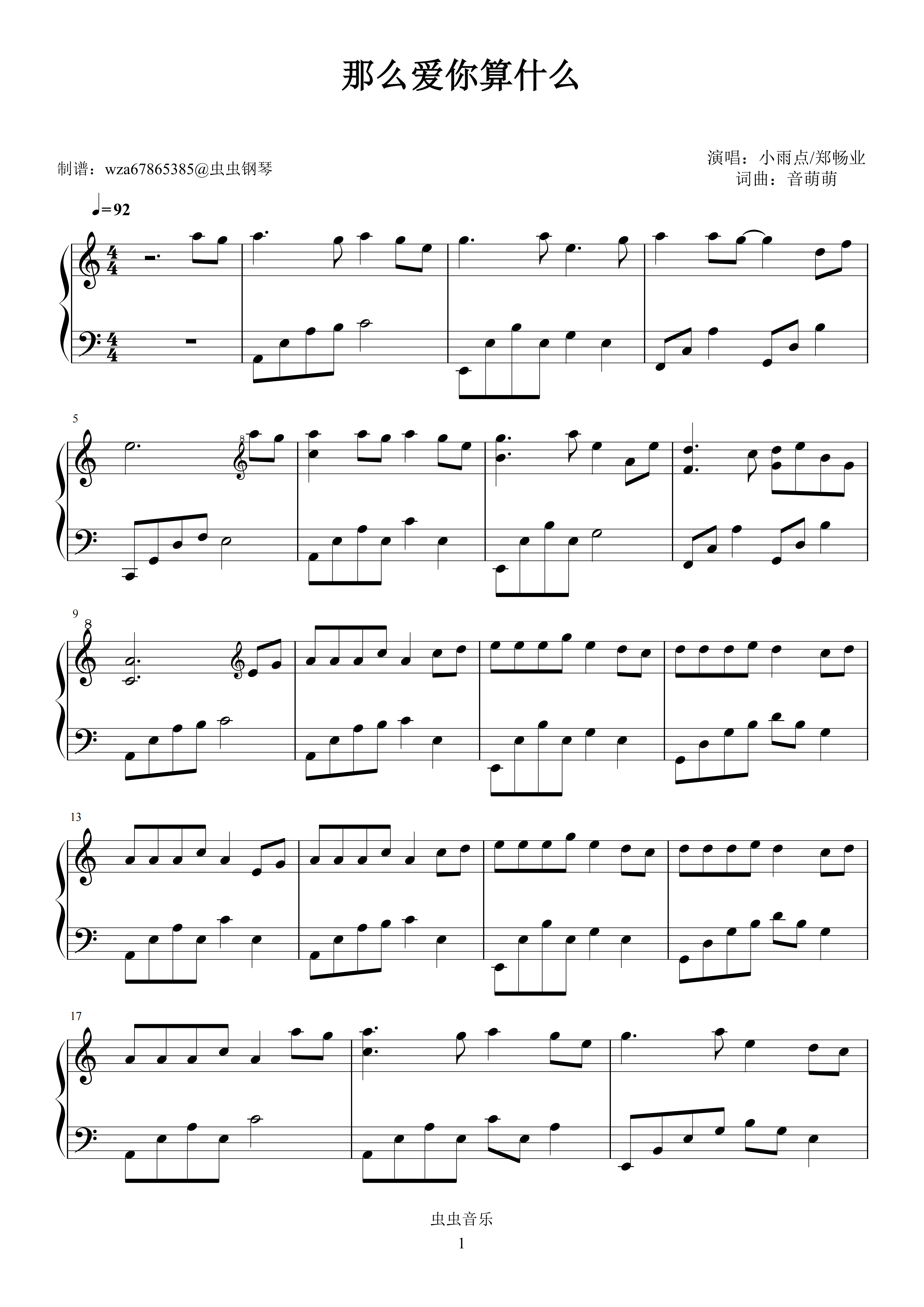 钢琴谱:那么爱你算什么