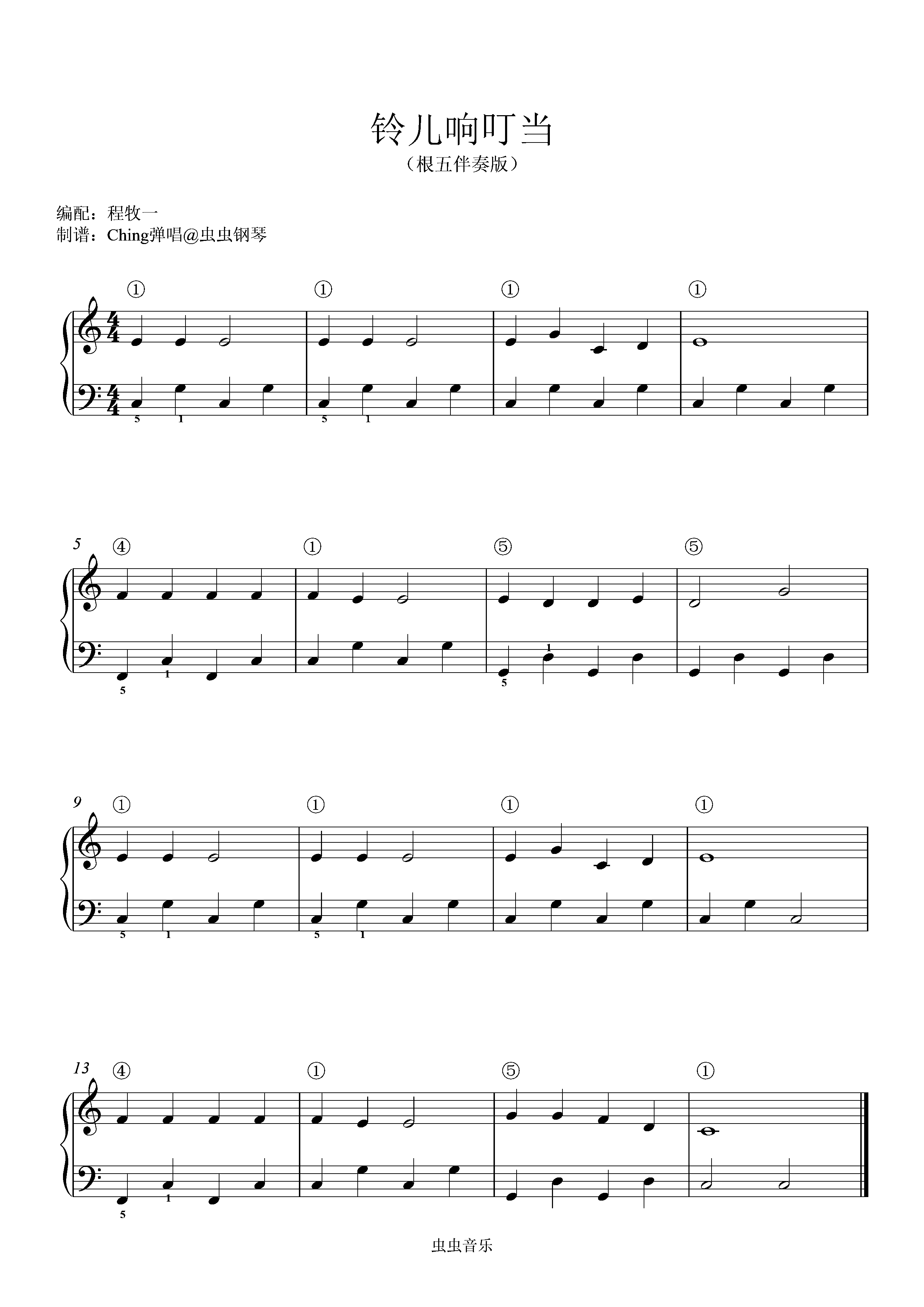 • 52.铃儿响叮当钢琴简谱 c调 数字双手