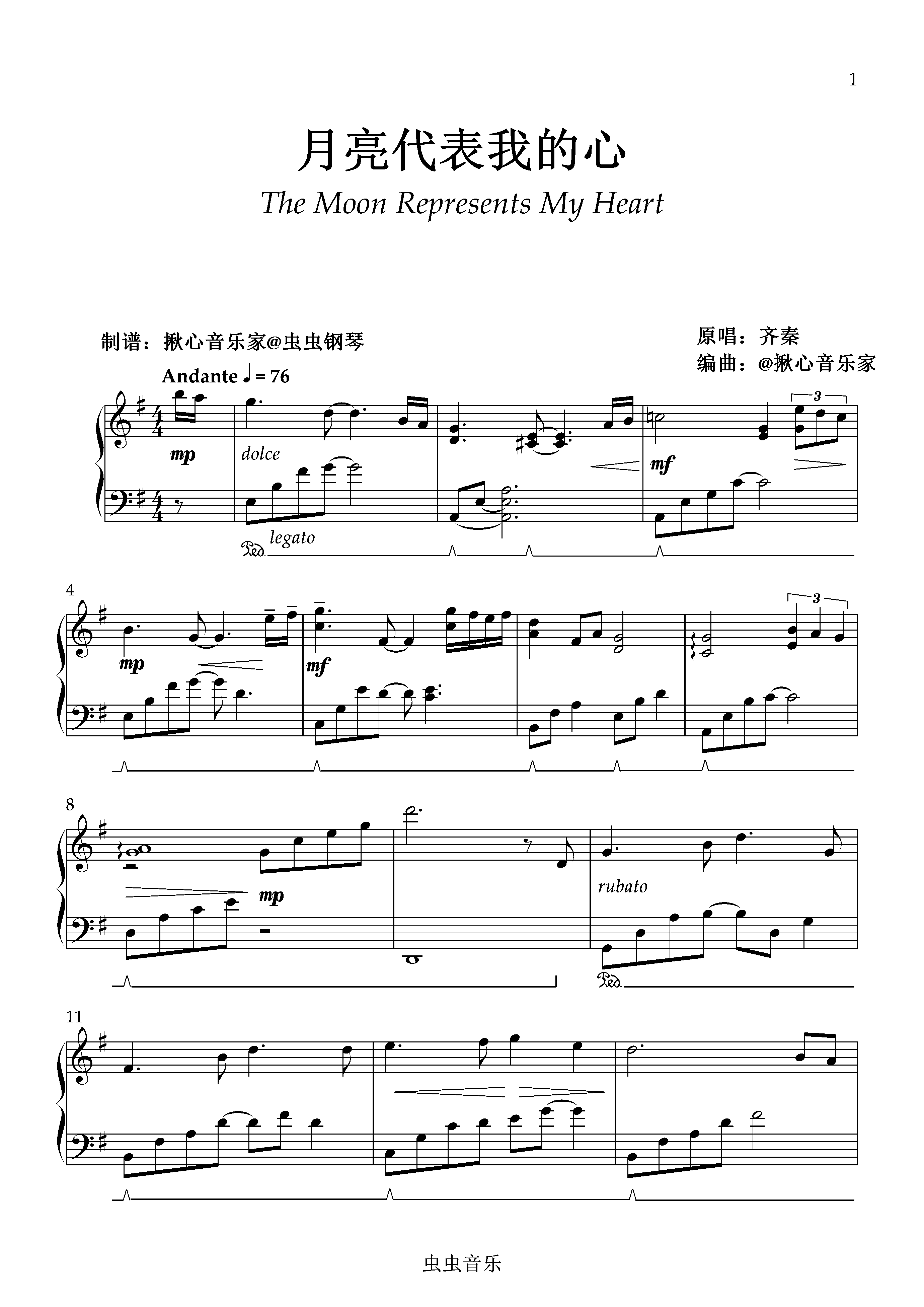 钢琴谱:月亮代表我的心 原调完美编曲版