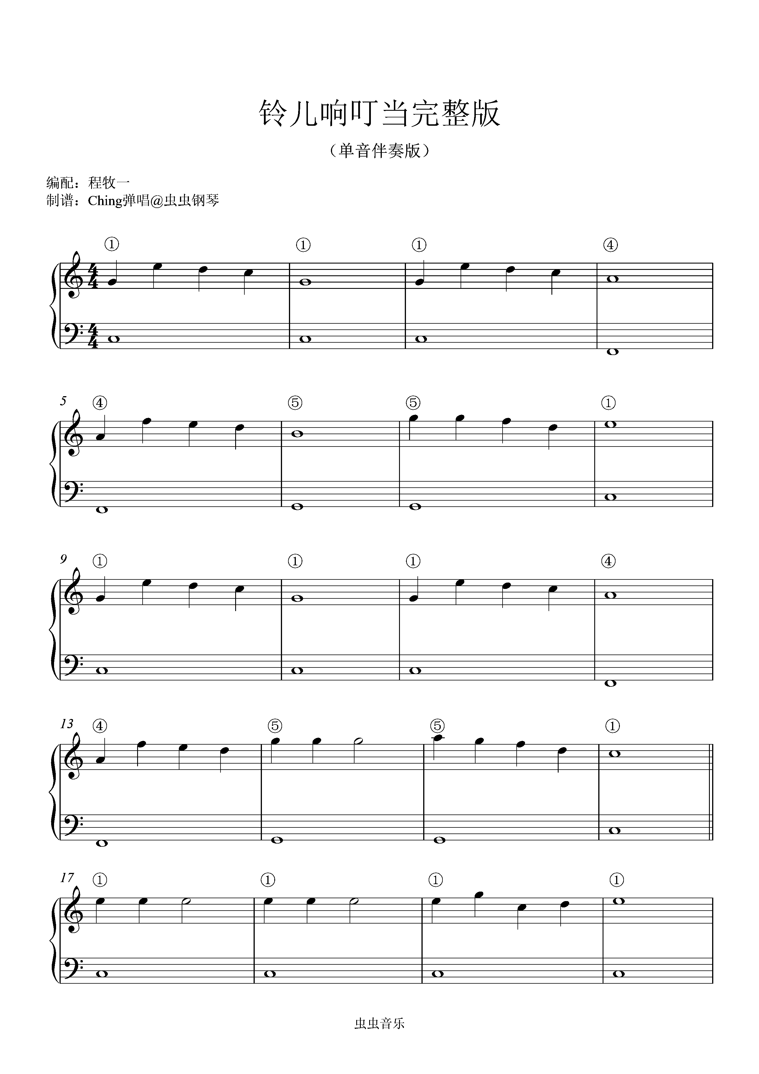 • 1.铃儿响叮当钢琴简谱 C调 数字双手 彼尔彭特