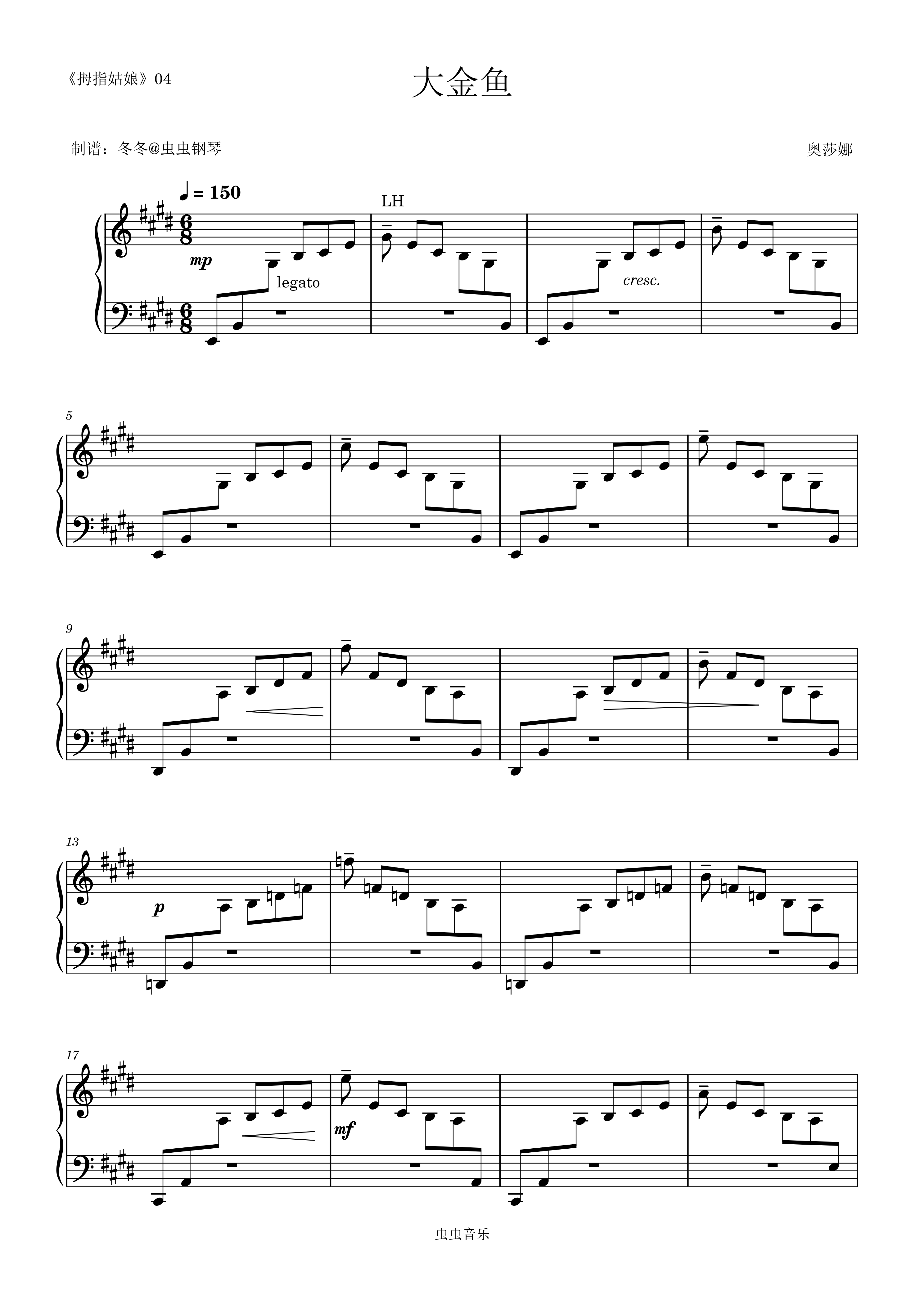 • 大眠钢琴简谱 E调 数字双手 施人诚