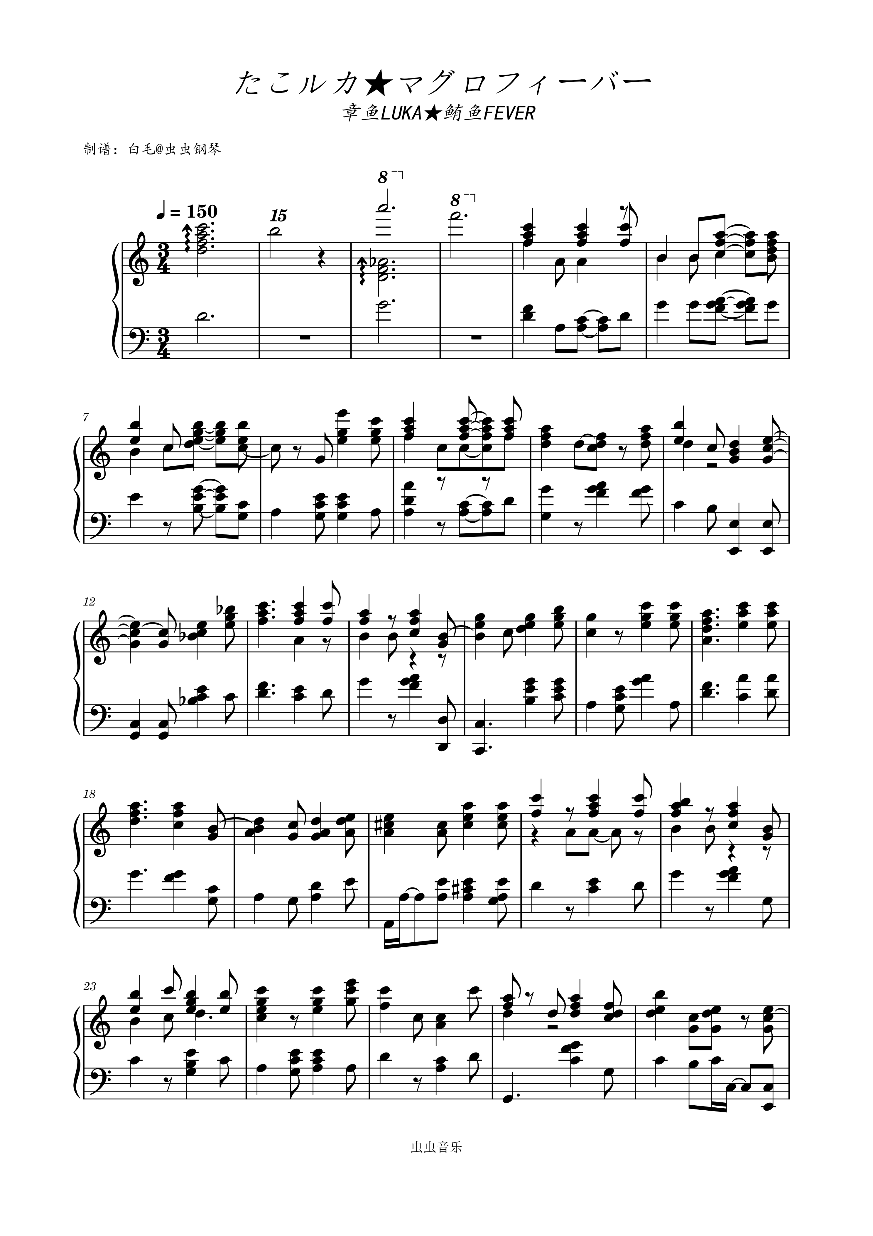钢琴谱:たこルカ★マグロフィーバー (章鱼LUKA★鲔鱼FEVER ) C大调