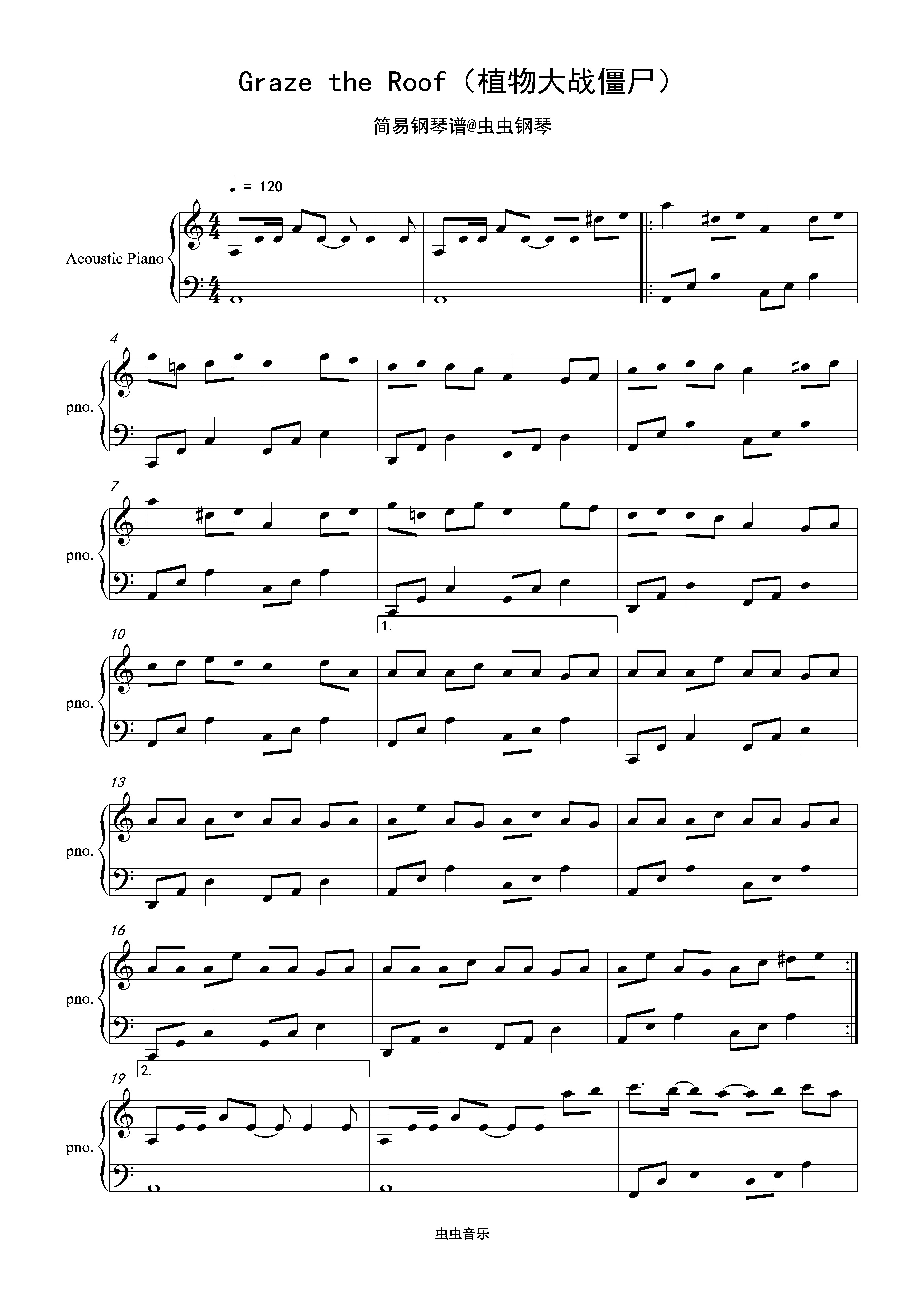 钢琴谱:Graze the Roof(植物大战僵尸) C调独奏