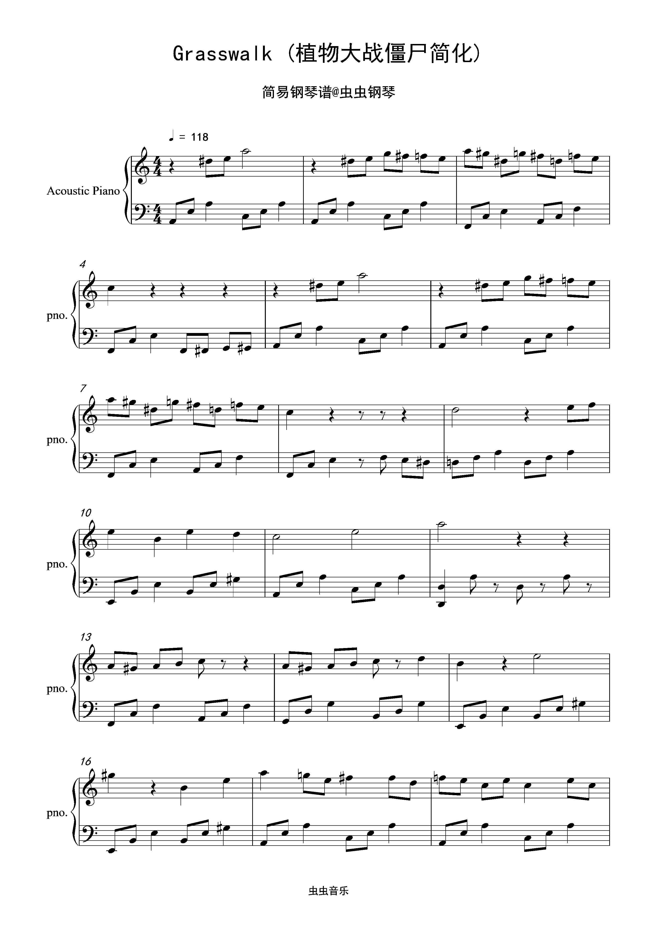 钢琴谱:Grasswalk (植物大战僵尸) C调独奏