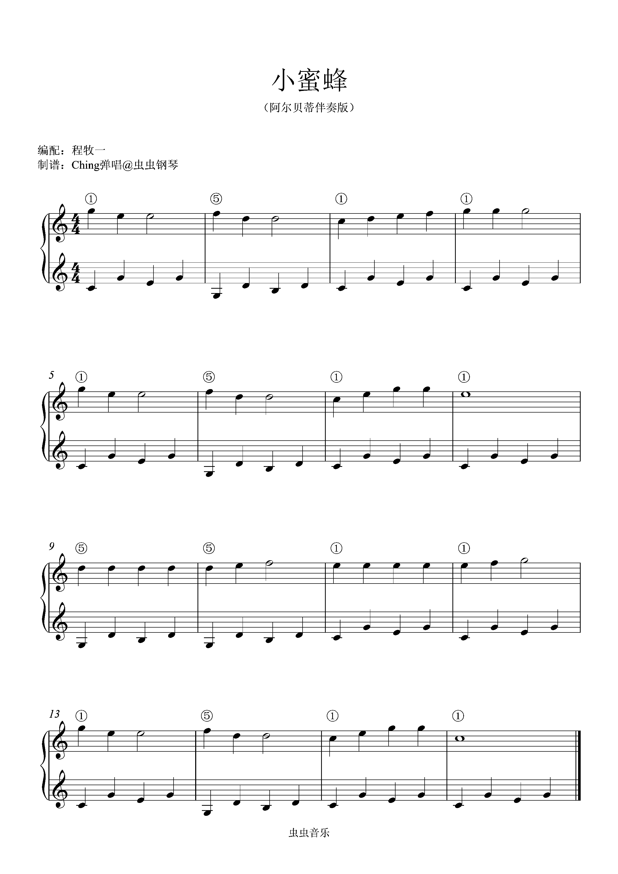 • 小蜜蜂钢琴简谱 C调 数字双手