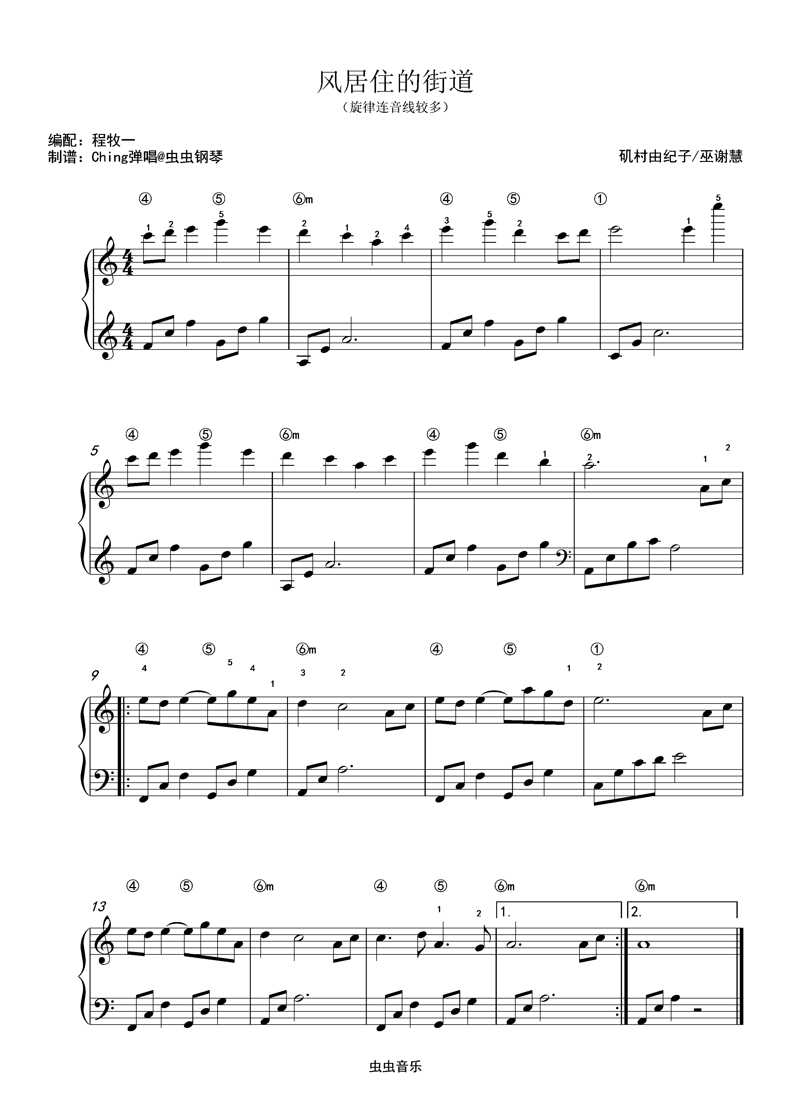 • 风居住的街道钢琴简谱 C调 数字双手