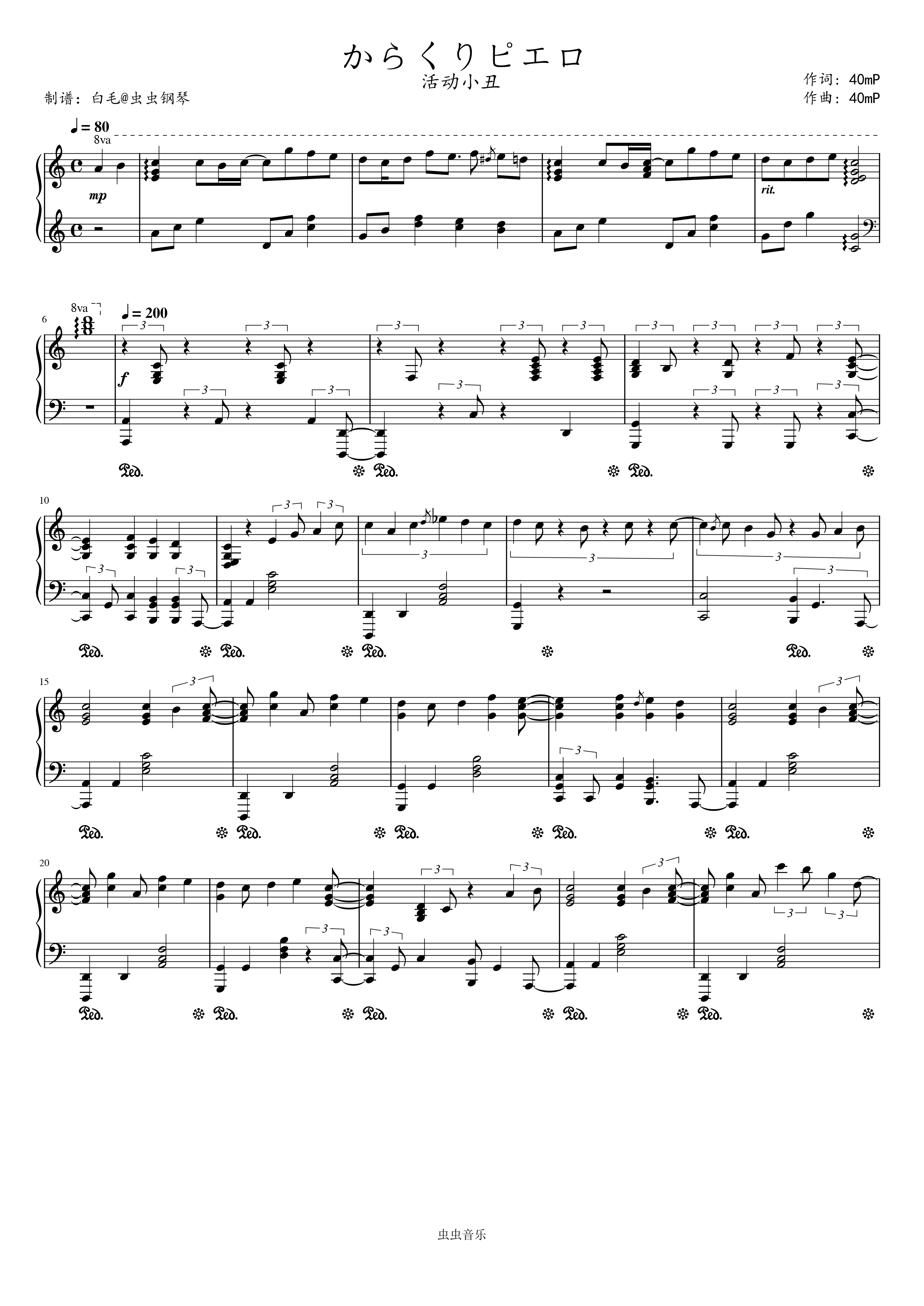 钢琴谱:からくりピエロ (活动小丑) C大调
