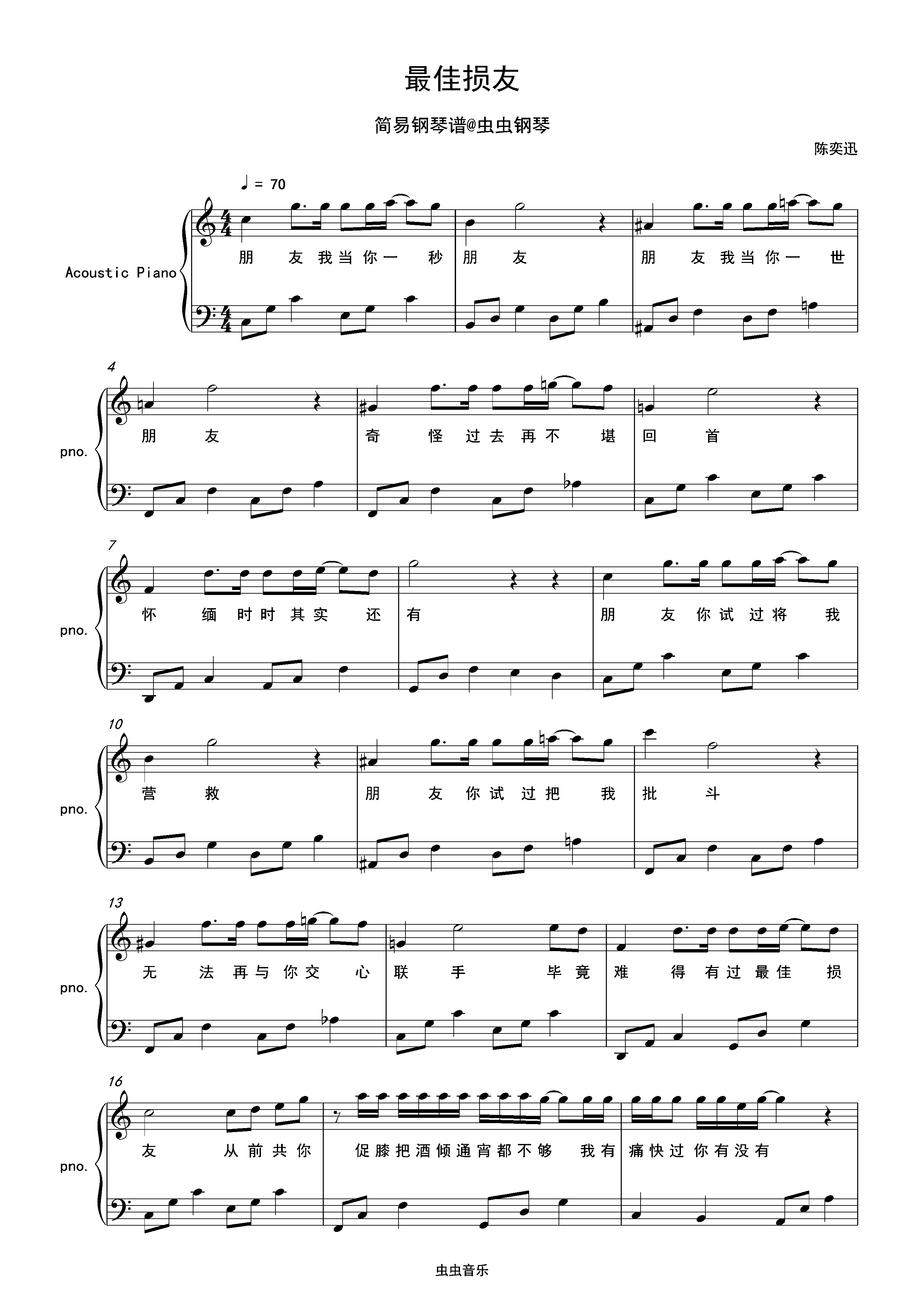 钢琴谱:最佳损友-陈奕迅 C调独奏