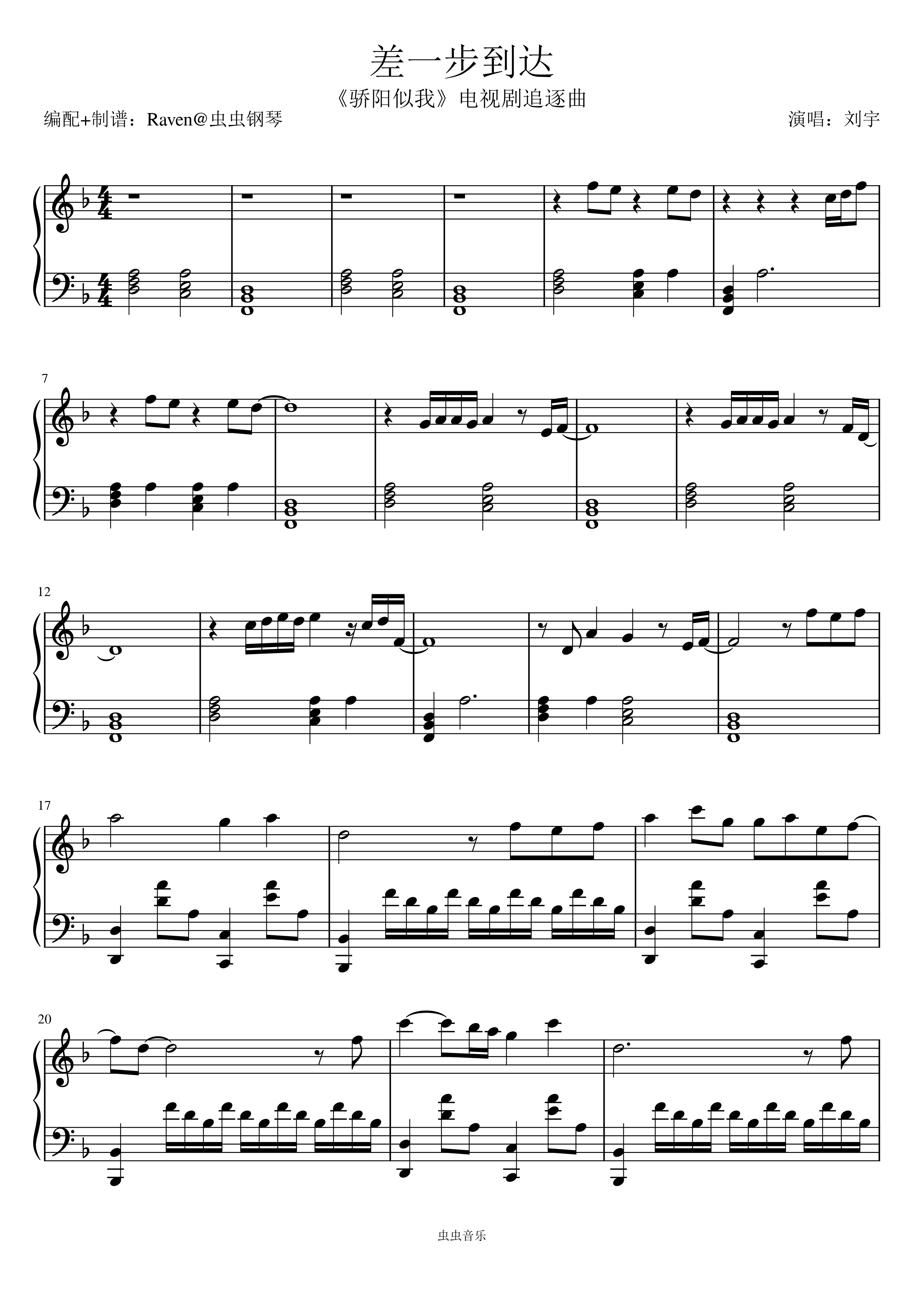 • 差一步钢琴简谱 C调 数字双手 高进