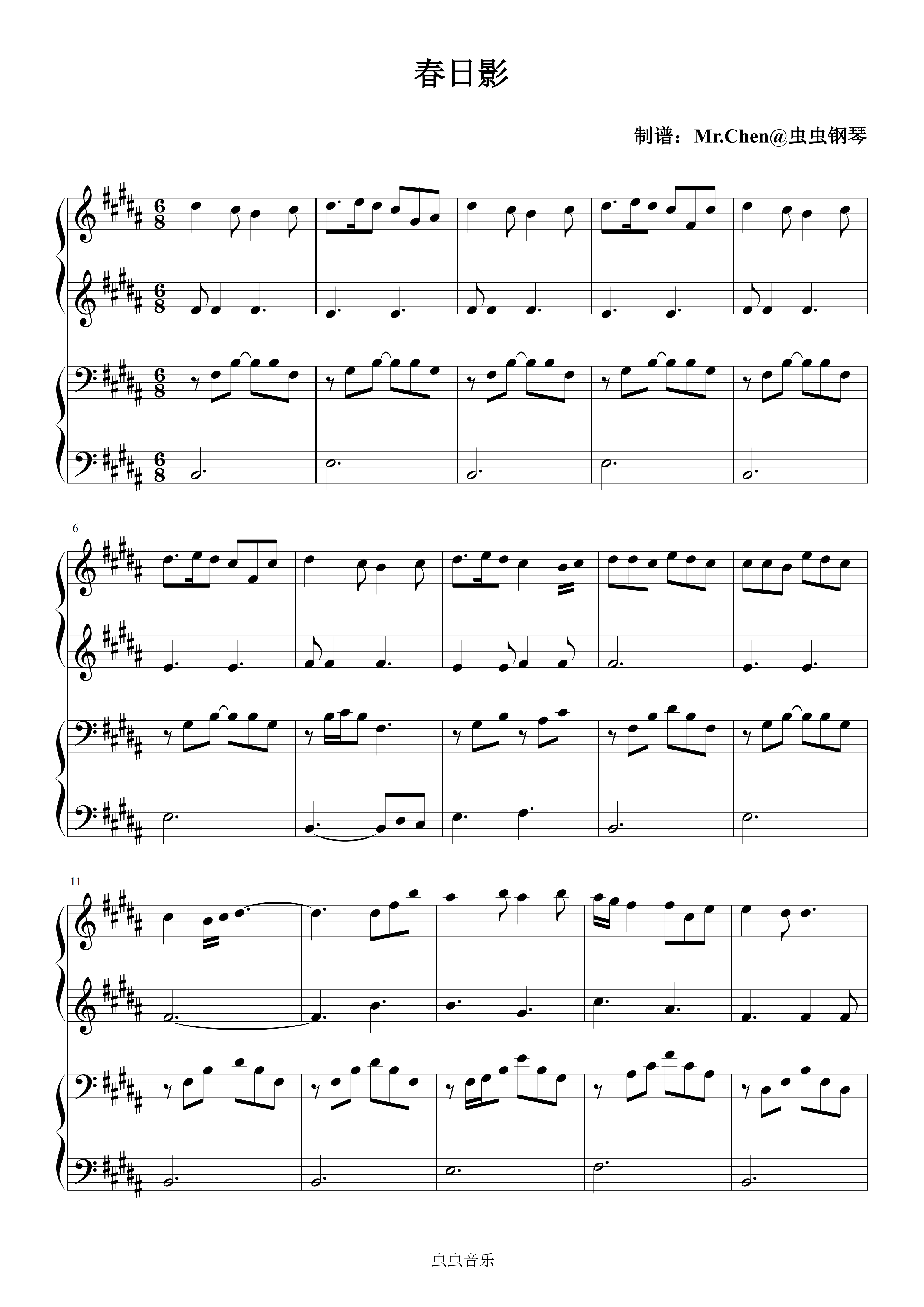 钢琴谱:春日影 (四手联弹)- CRYCHIC