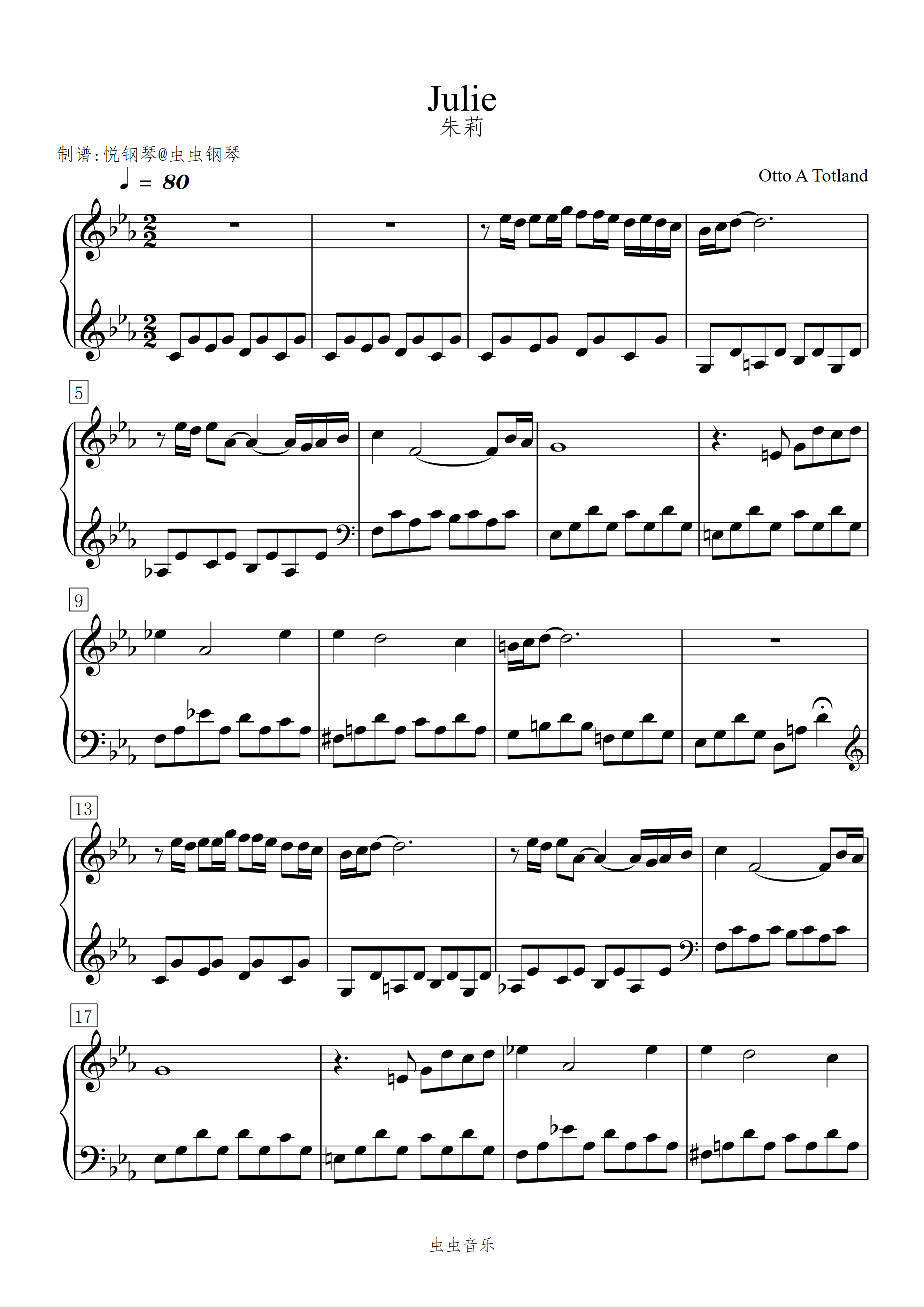 钢琴谱:朱莉/Julie 【宁静】