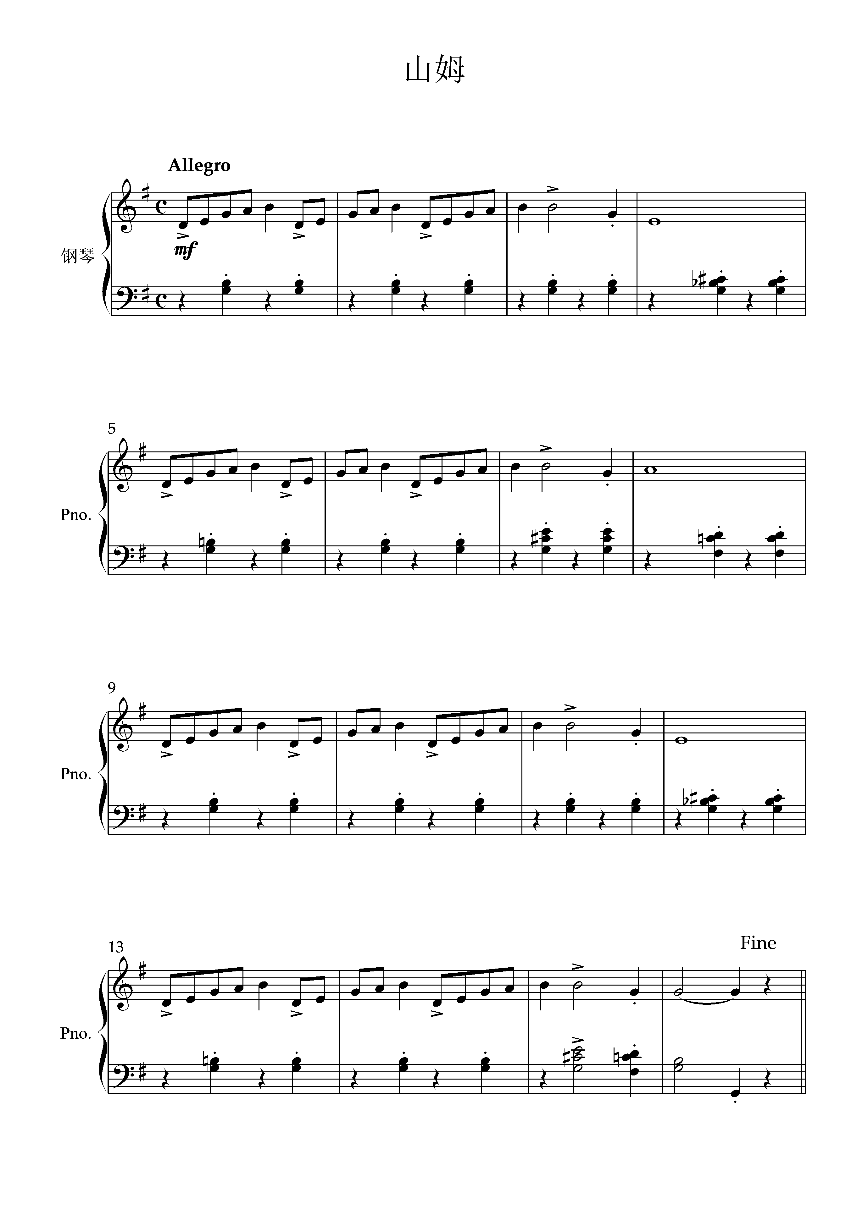 • 狡猾的山姆钢琴简谱 F调 数字双手