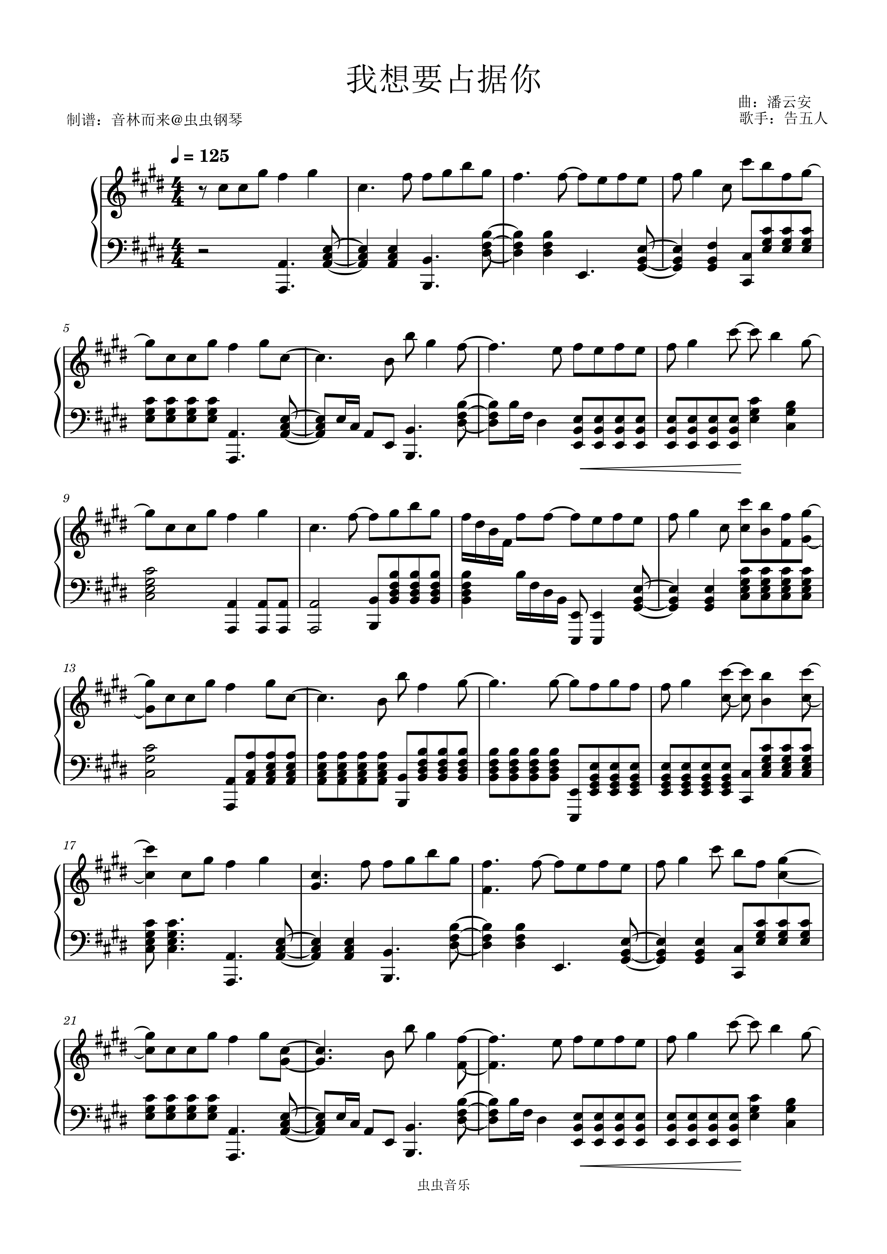 我想要占据你钢琴简谱 数字双手 潘云安