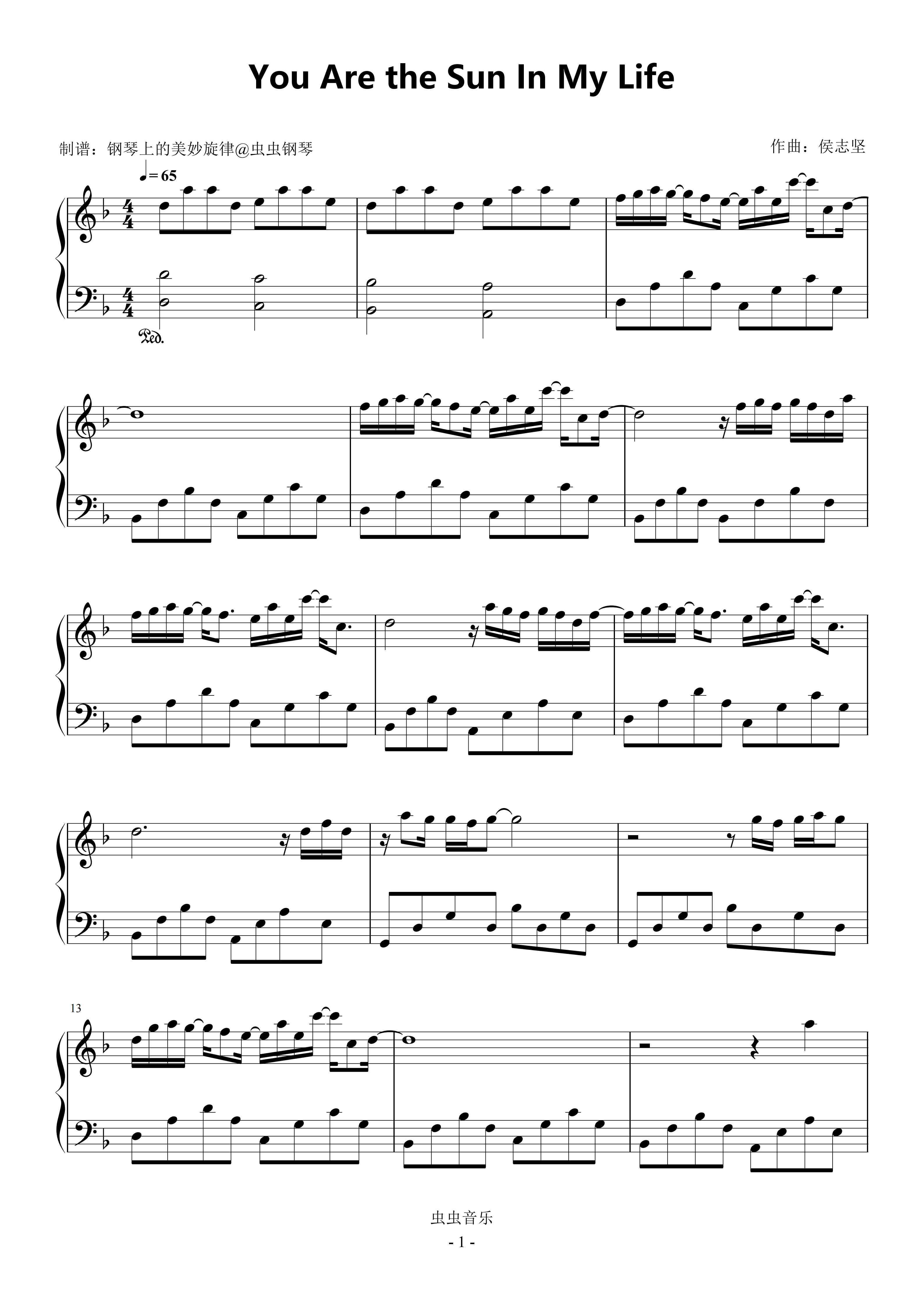 钢琴谱:You Are the Sun In My Life 原调简易版 卢苑仪