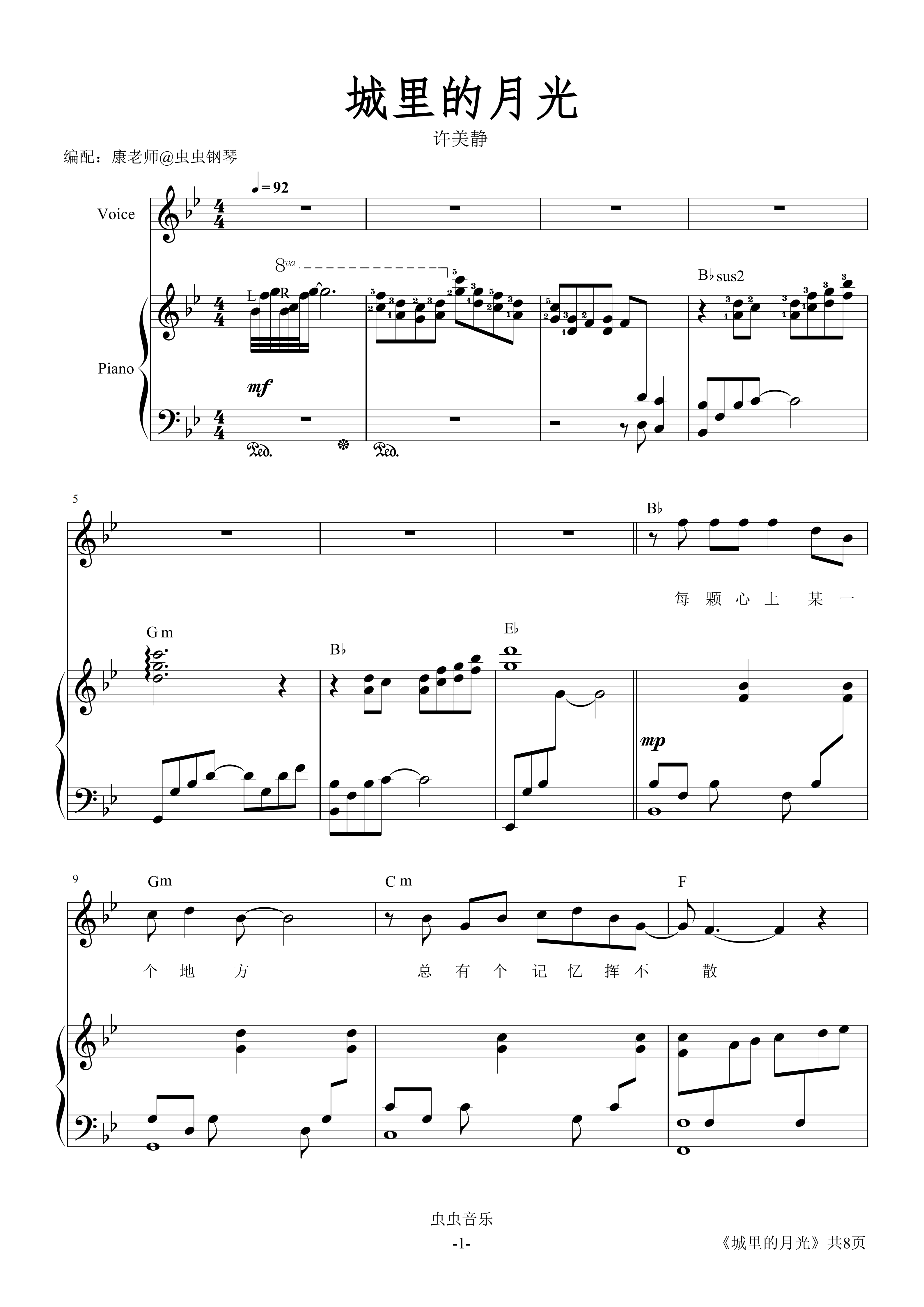 钢琴谱:城里的月光 弹唱谱
