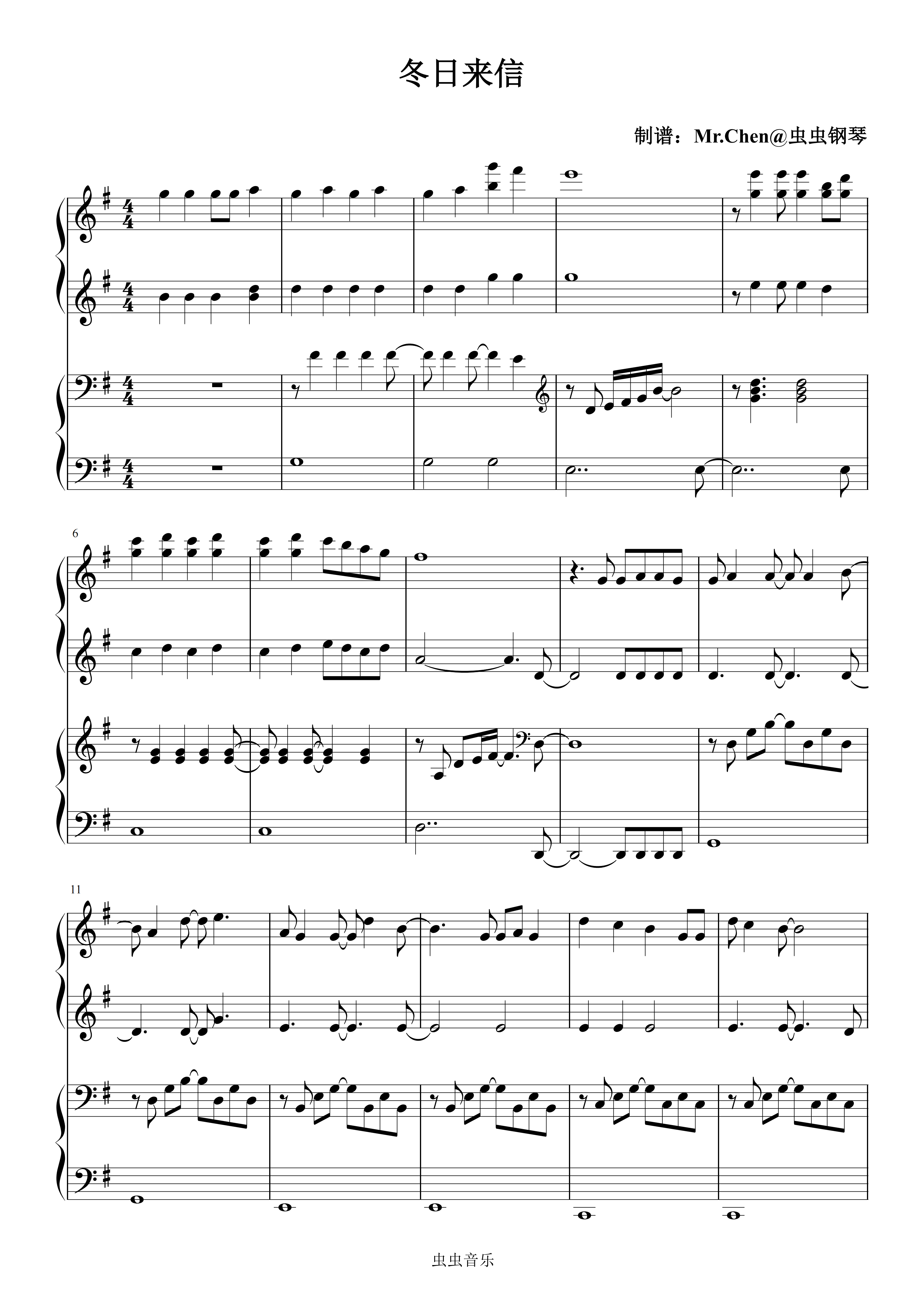 • 冬日钢琴简谱 G调 数字双手 郭德紫毅