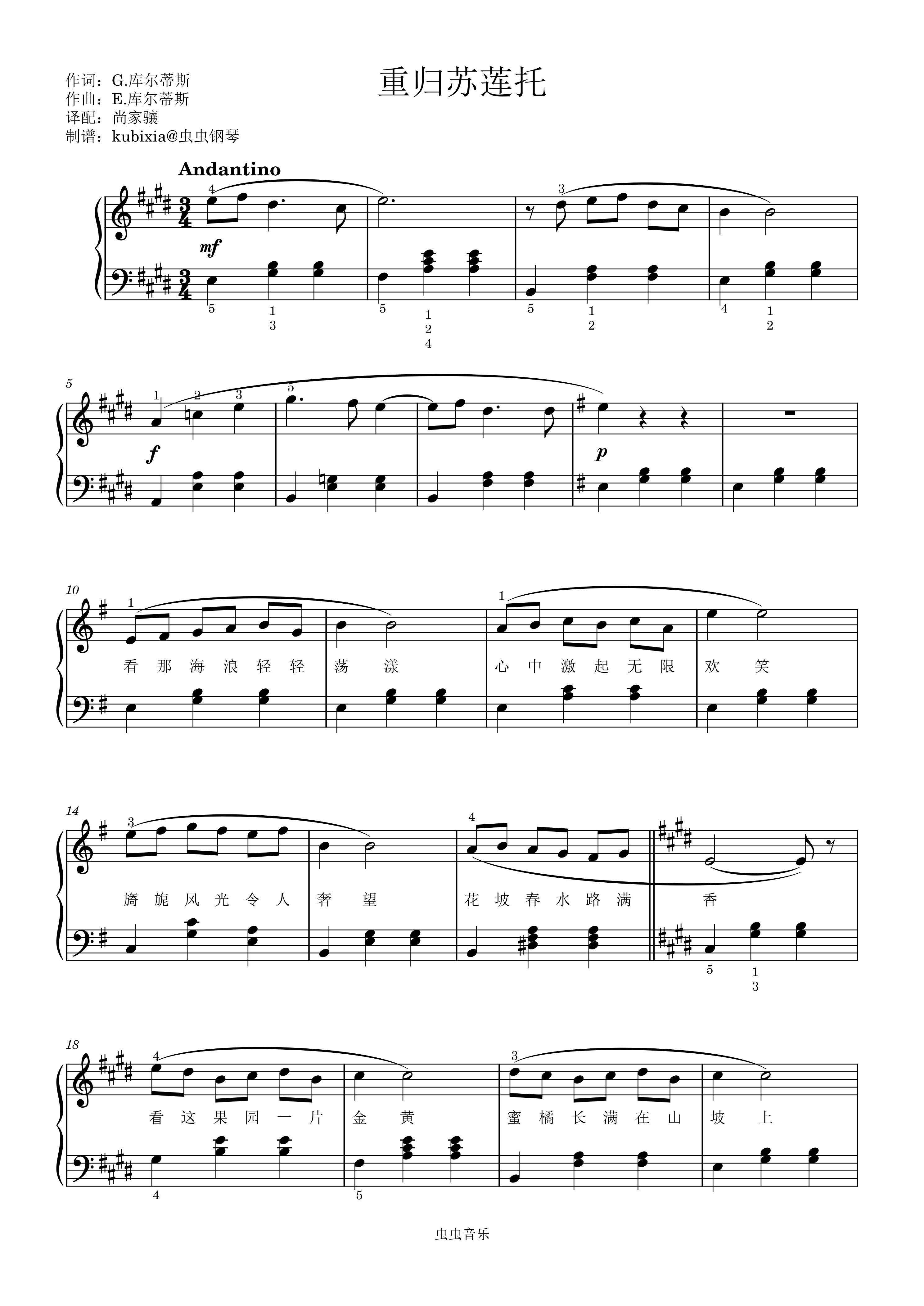 • 念归去钢琴简谱 F调 数字双手 龚淑均
