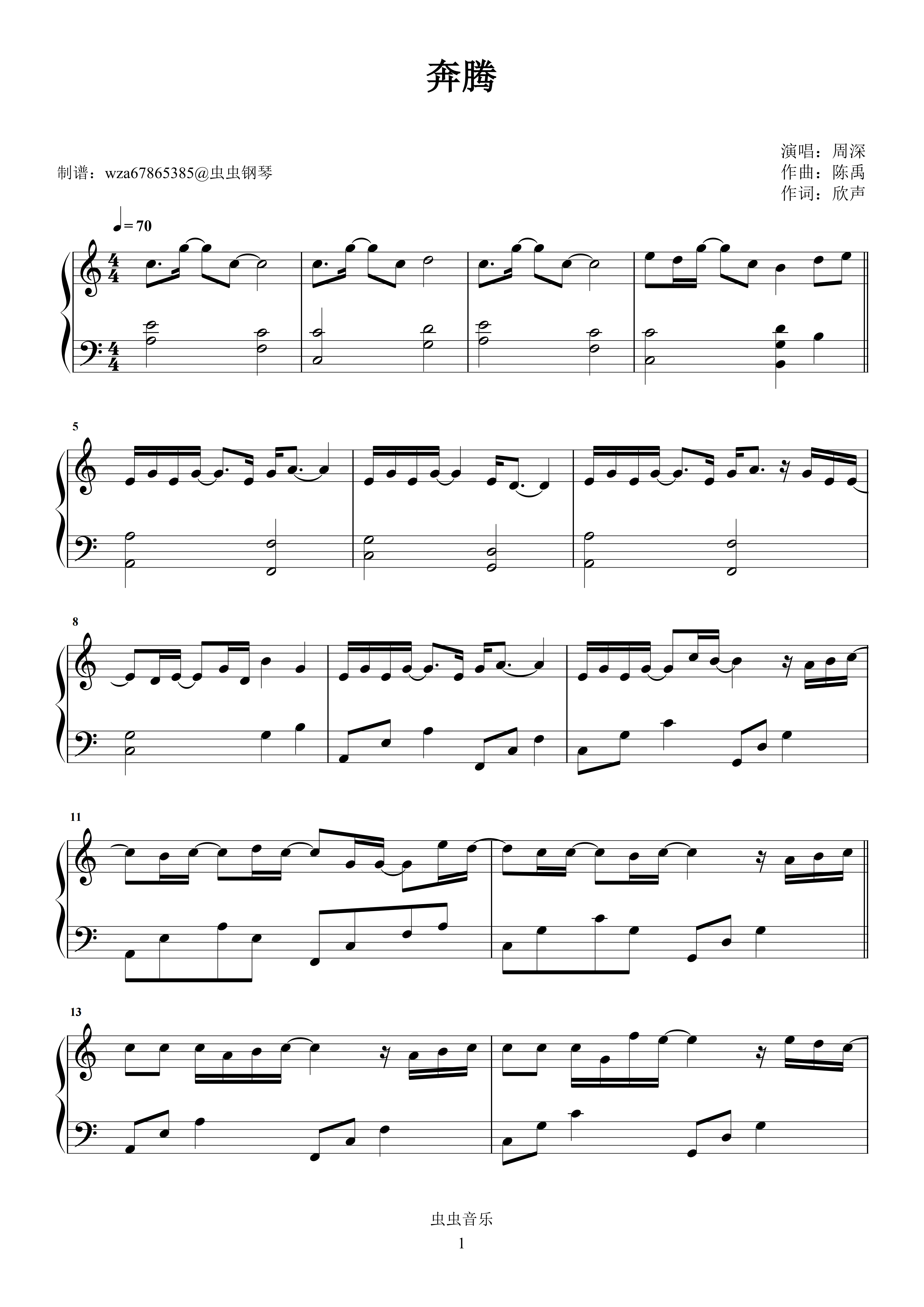 钢琴谱:奔腾