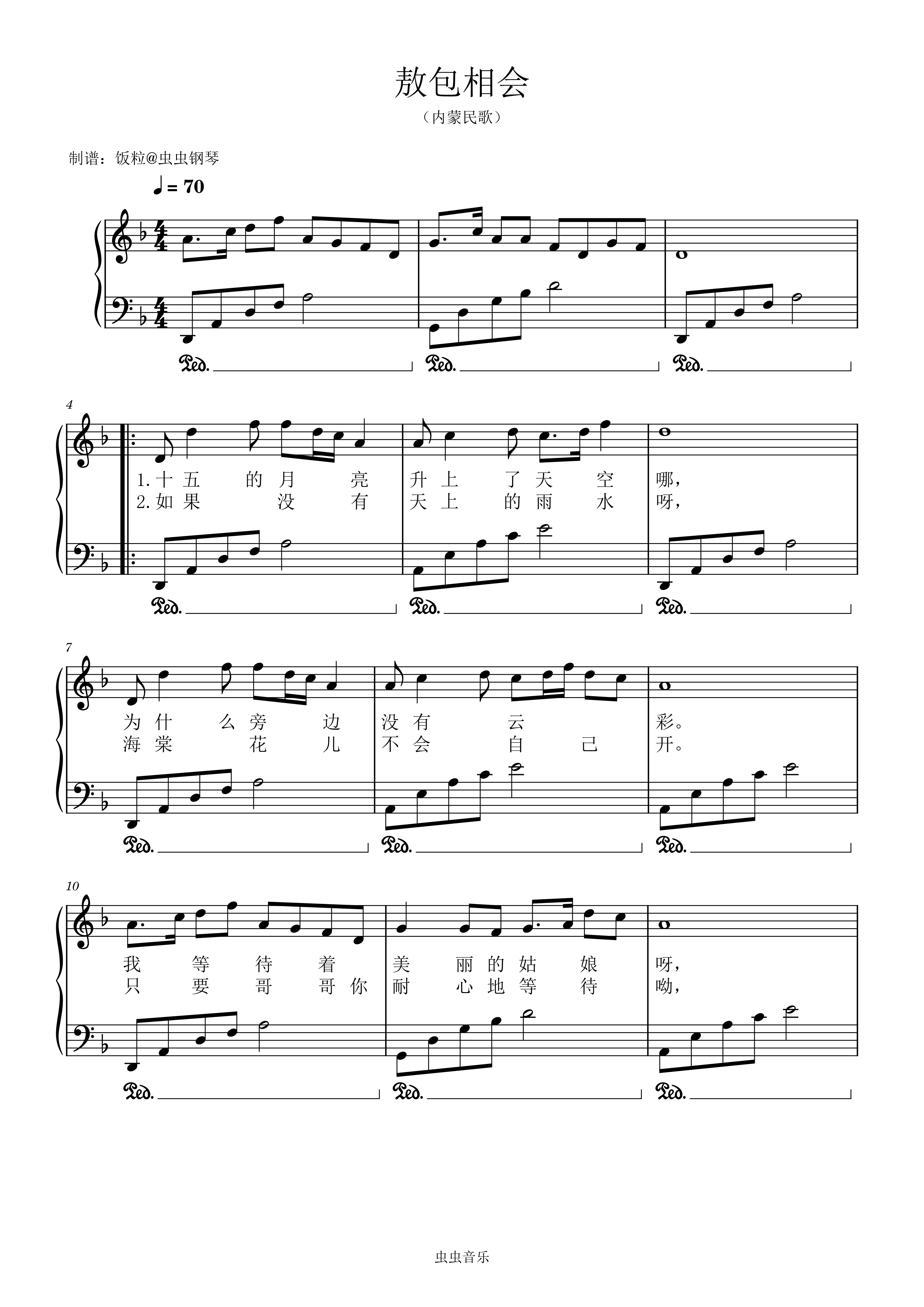 • 敖包相会钢琴简谱 C调 数字双手 玛拉沁夫/海默