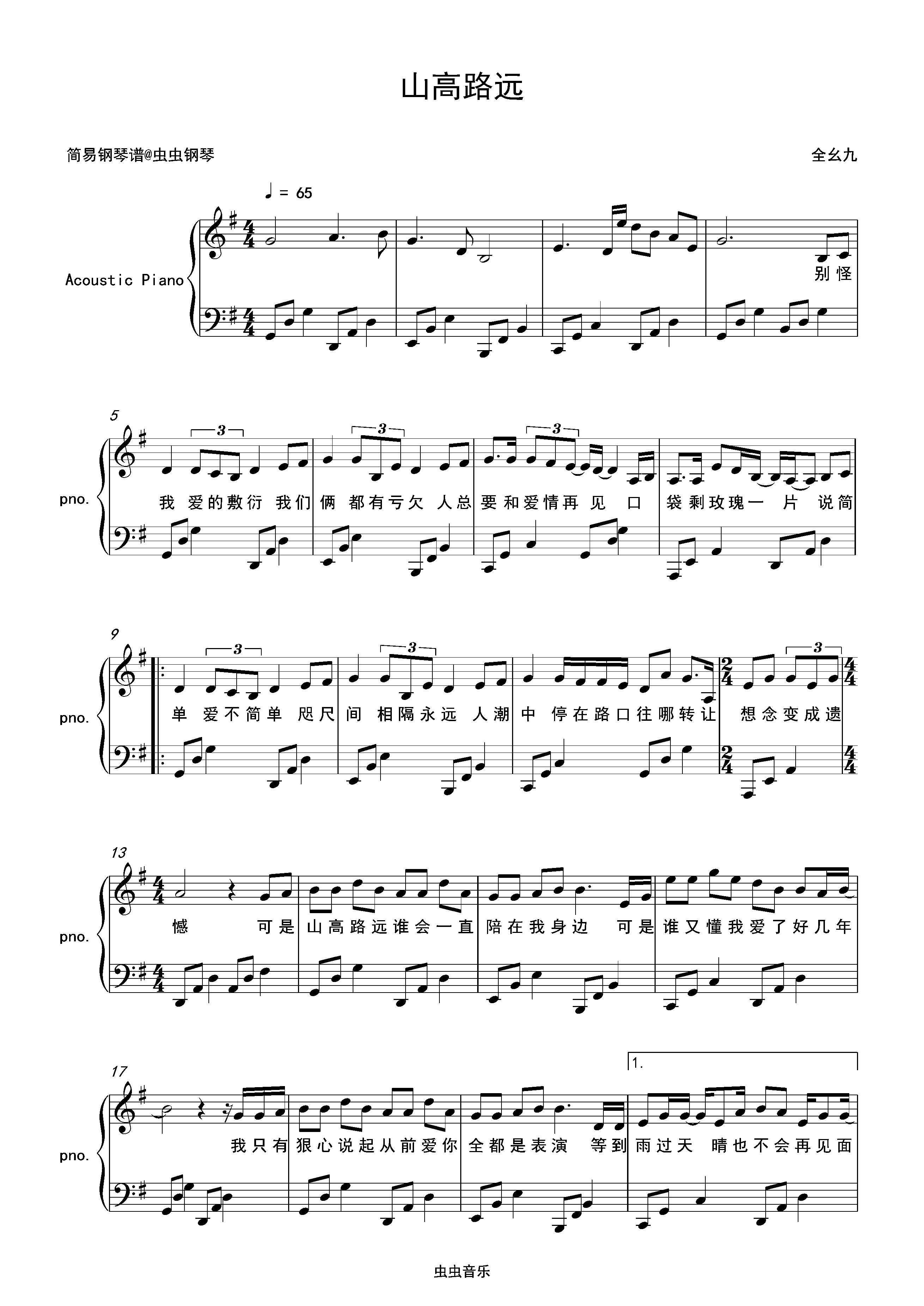 钢琴谱:山高路远-全幺九 G调独奏