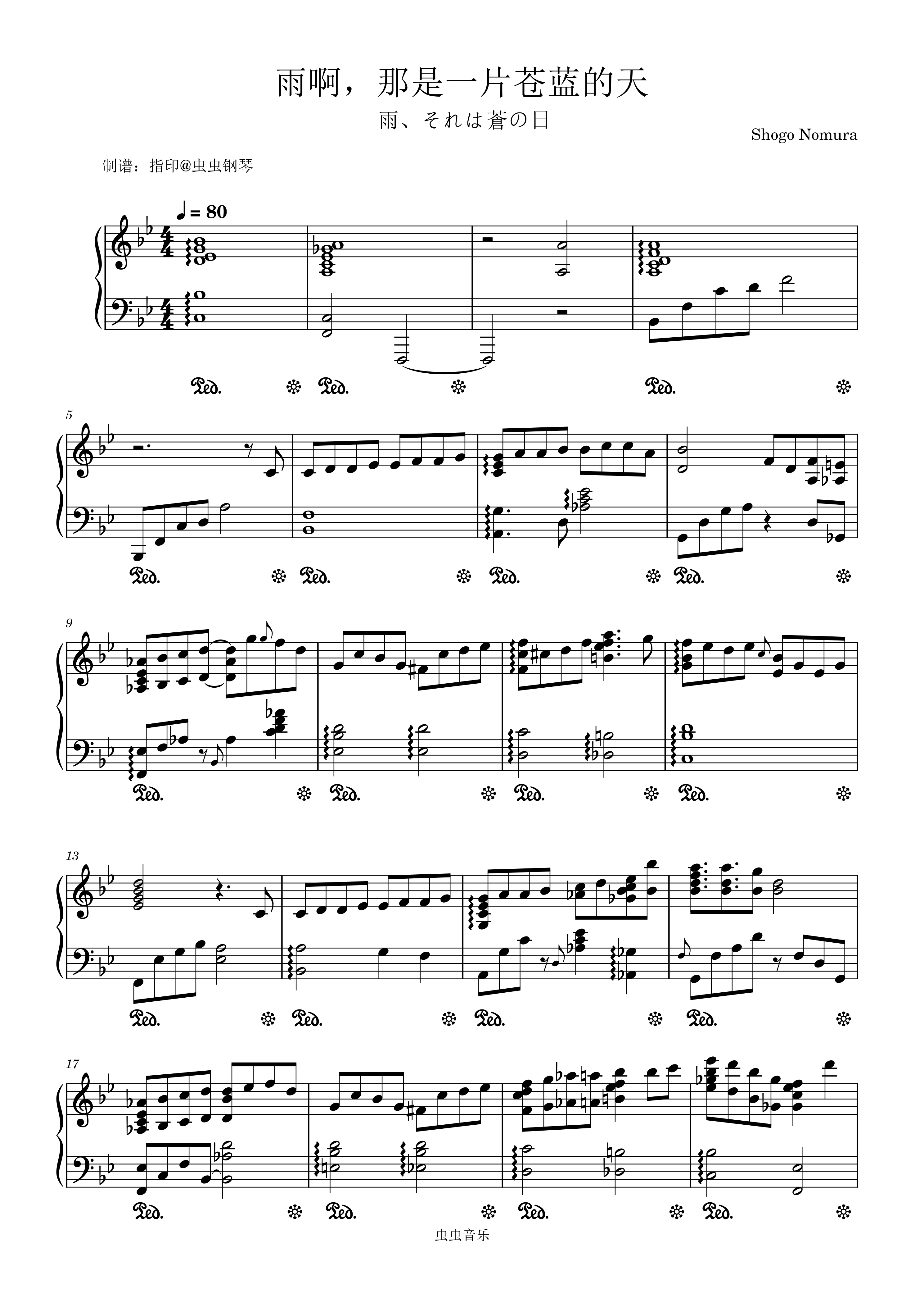 钢琴谱:唯美治愈《雨啊,那是一片苍蓝的天》