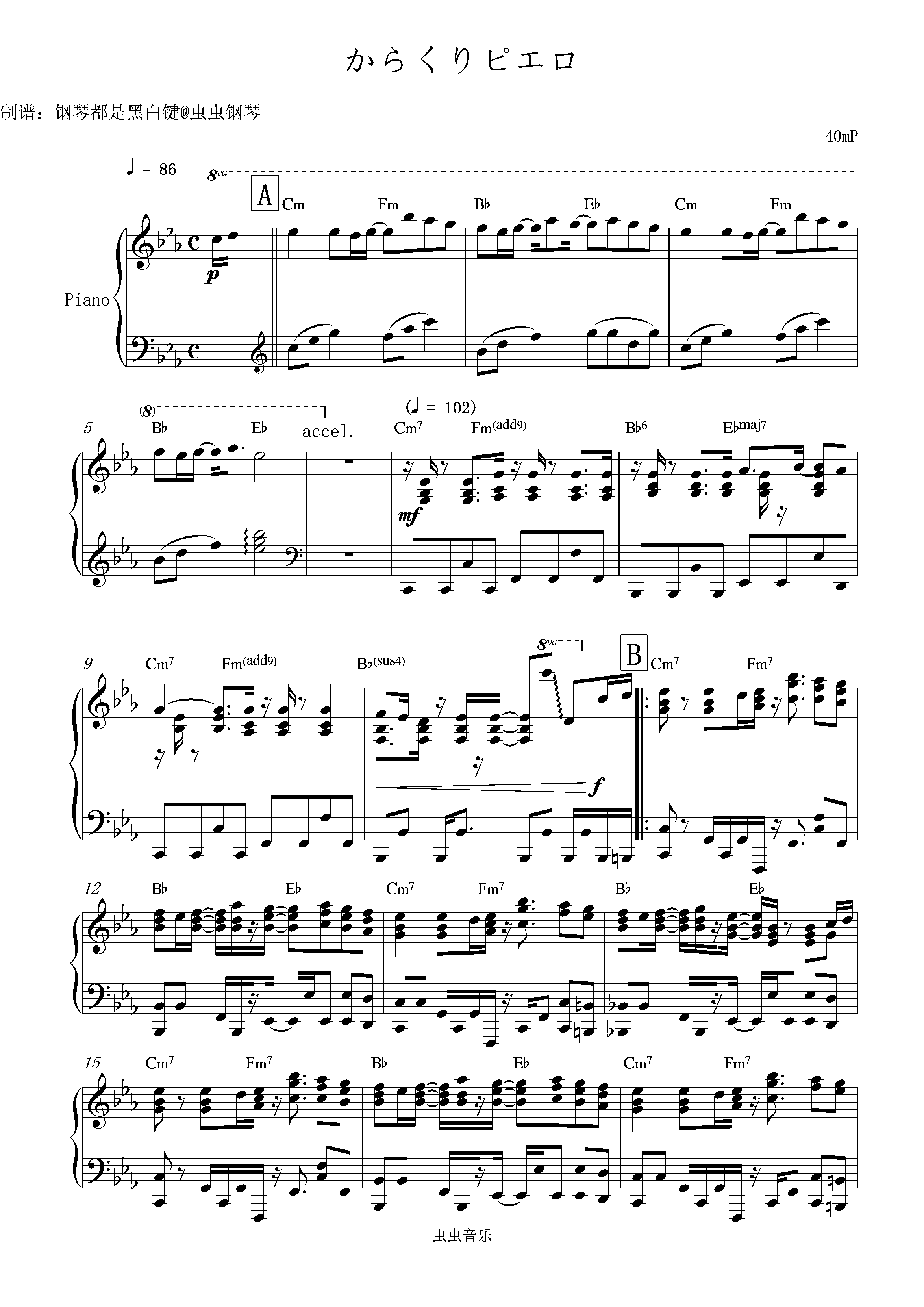 钢琴谱:[40mP / 初音ミク]活动小丑/からくりピエロ