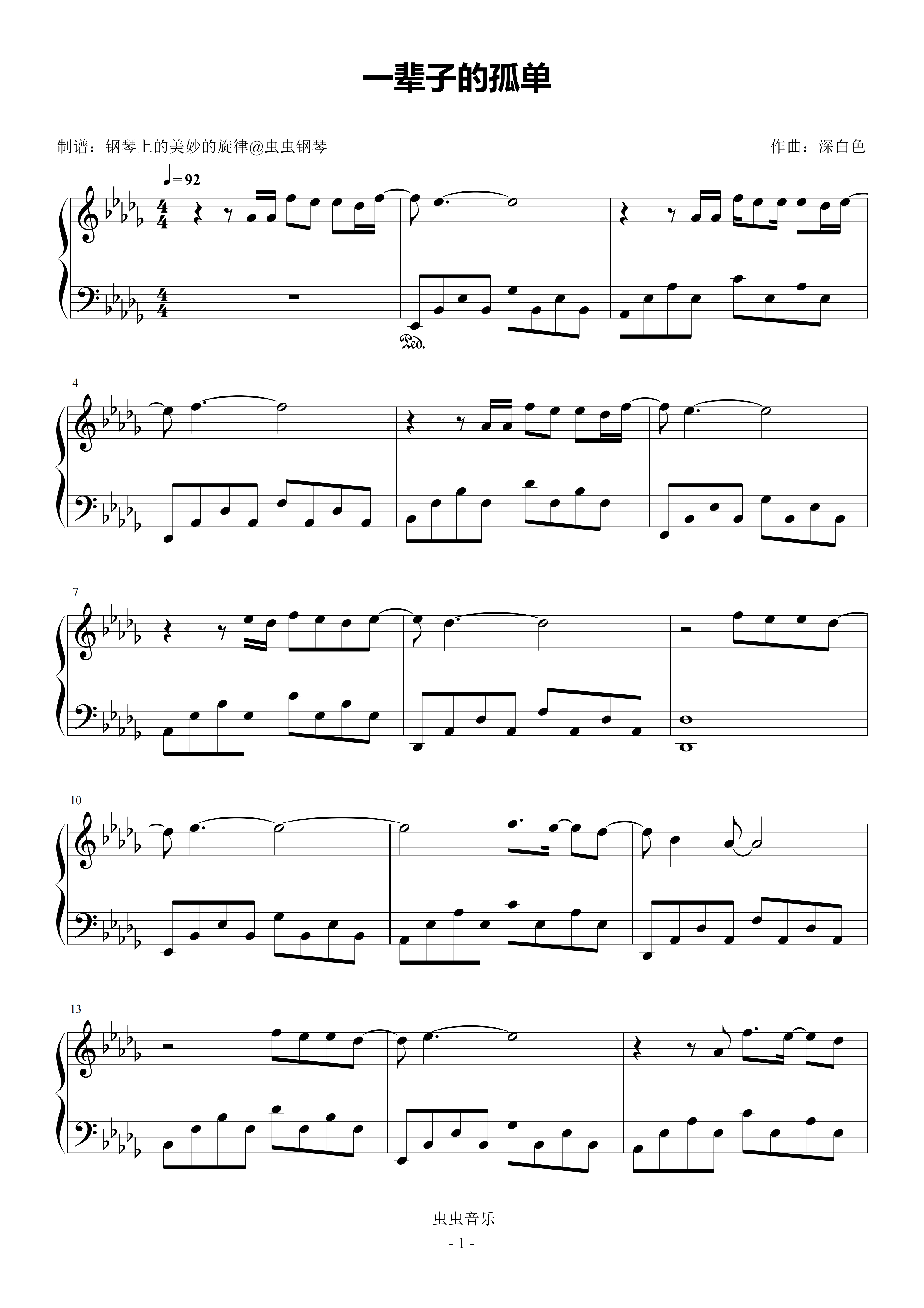 • 一辈子的孤单钢琴简谱 bb调 数字双手