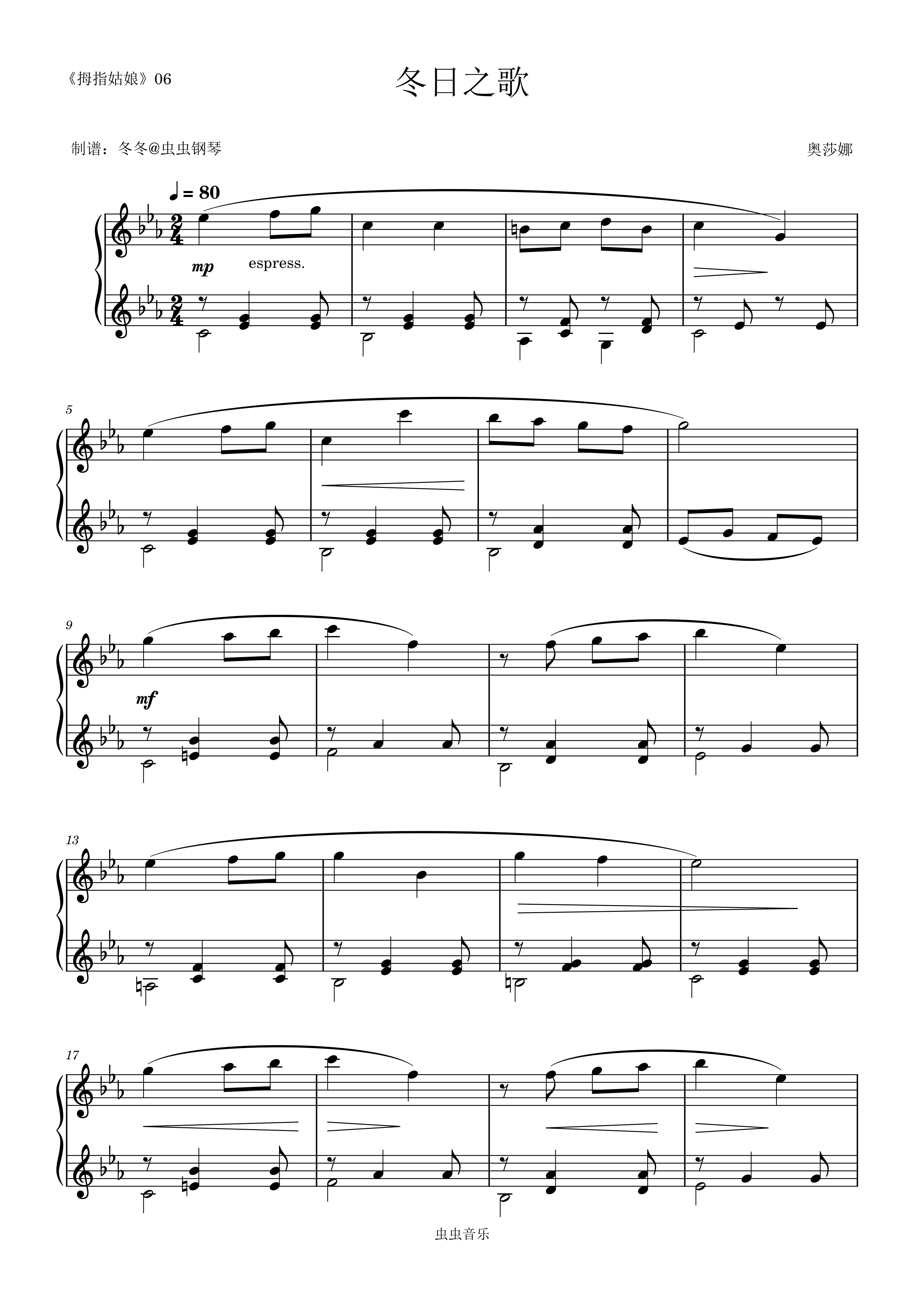 • A-1 冬日的风钢琴简谱 a调 数字双手