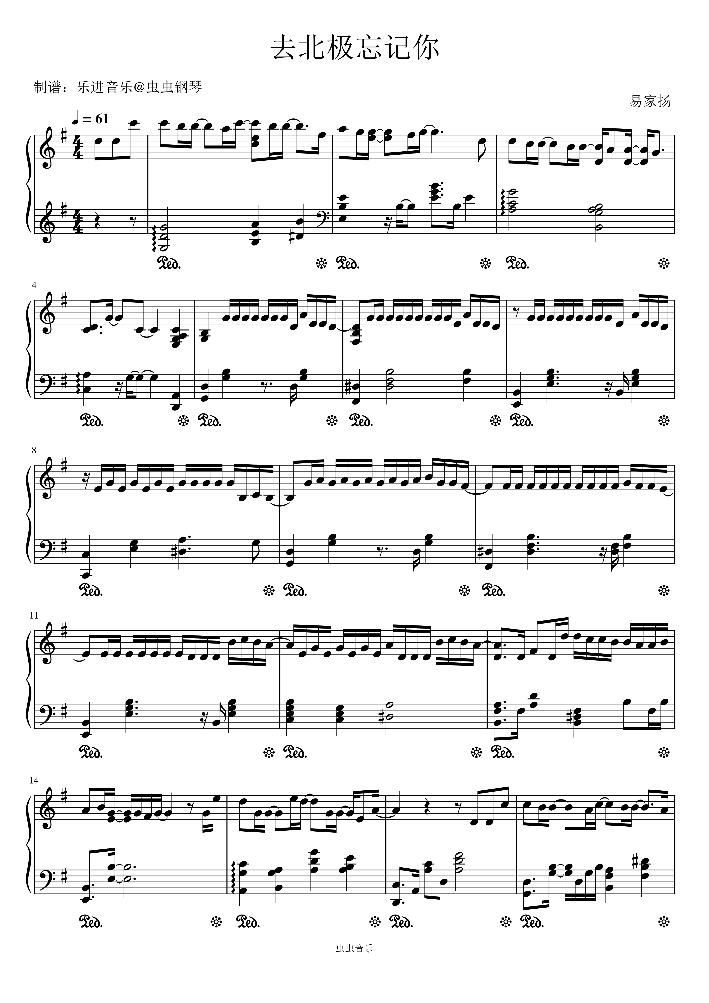 • 我不想忘记你钢琴简谱 D调 数字双手 严云农