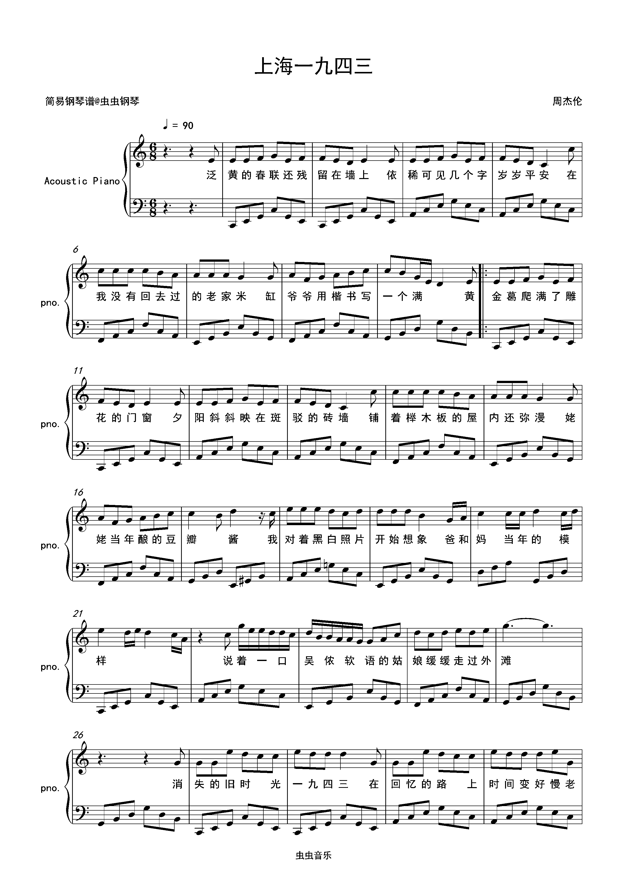 钢琴谱:上海一九四三-周杰伦 C调独奏