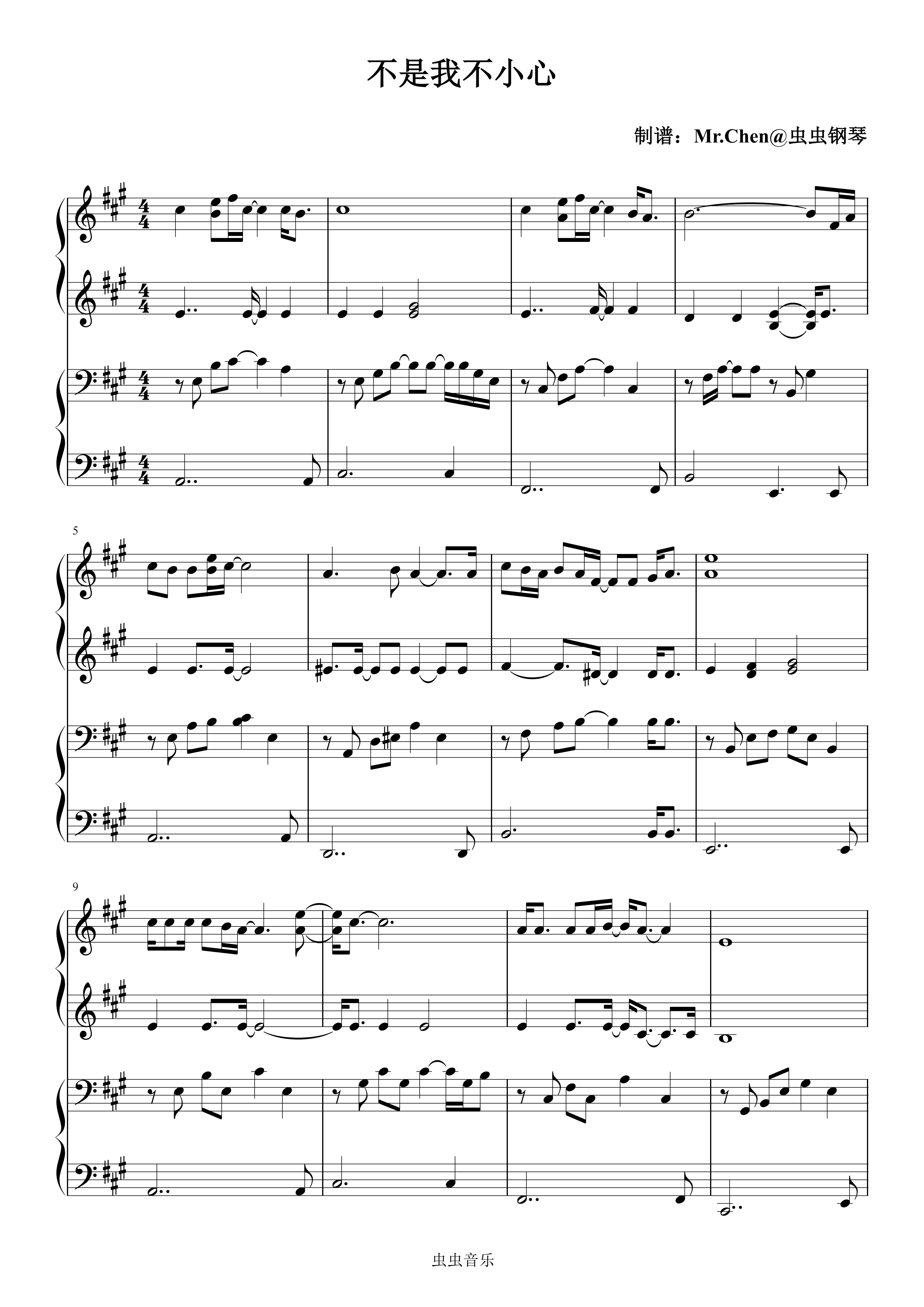 钢琴谱:不是我不小心 (四手联弹)- 张镐哲