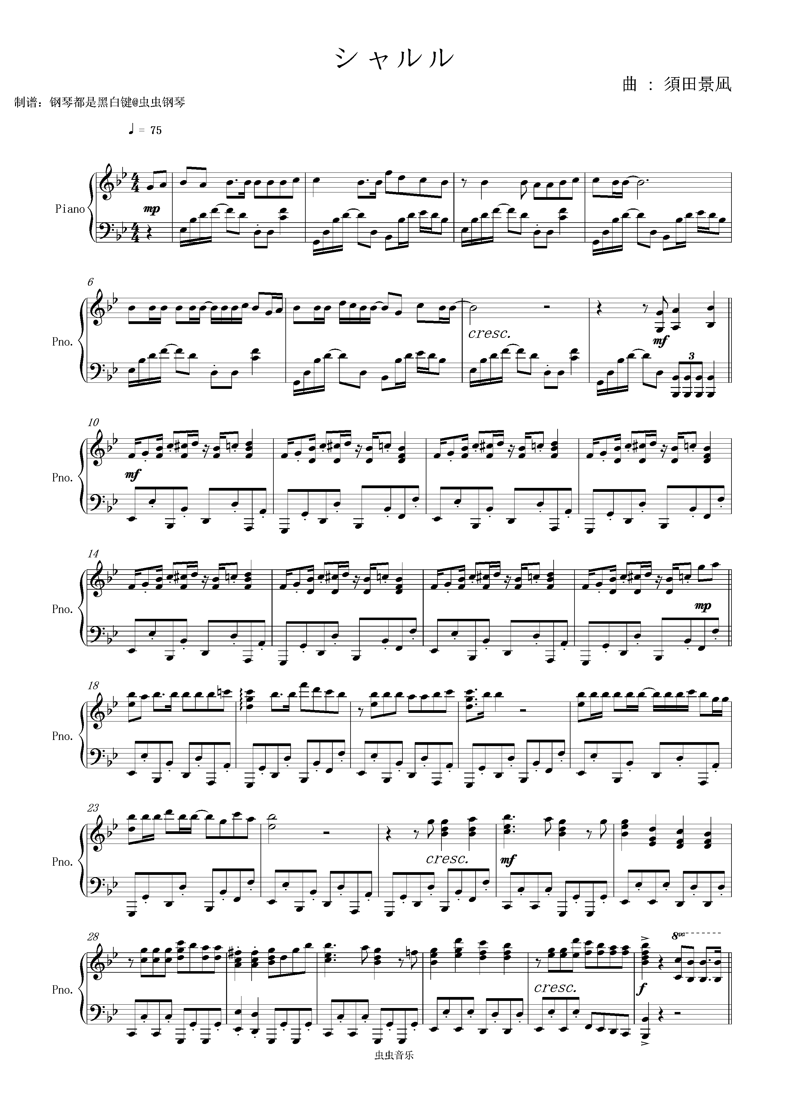 • ハルウタ钢琴简谱 G调 数字双手 山下穂尊