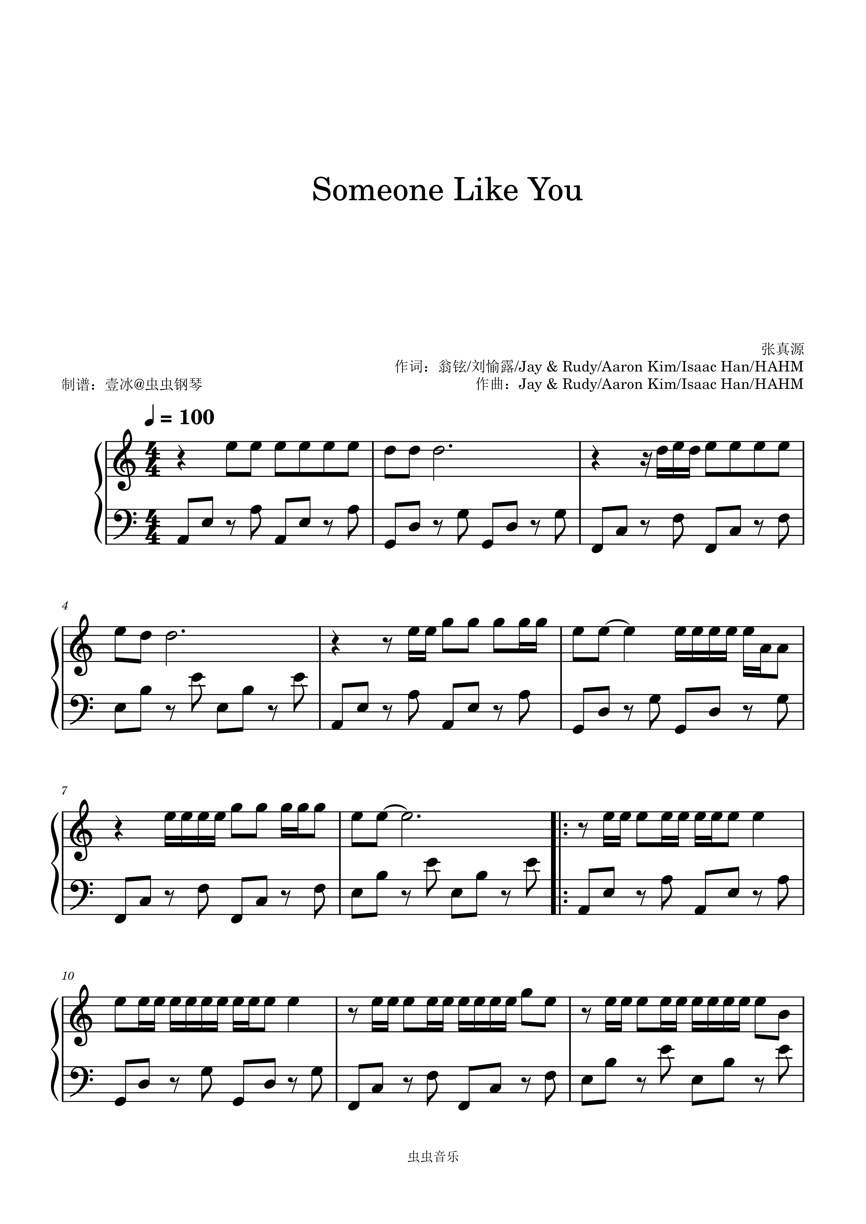钢琴谱:Someone Like You - 张真源 C调