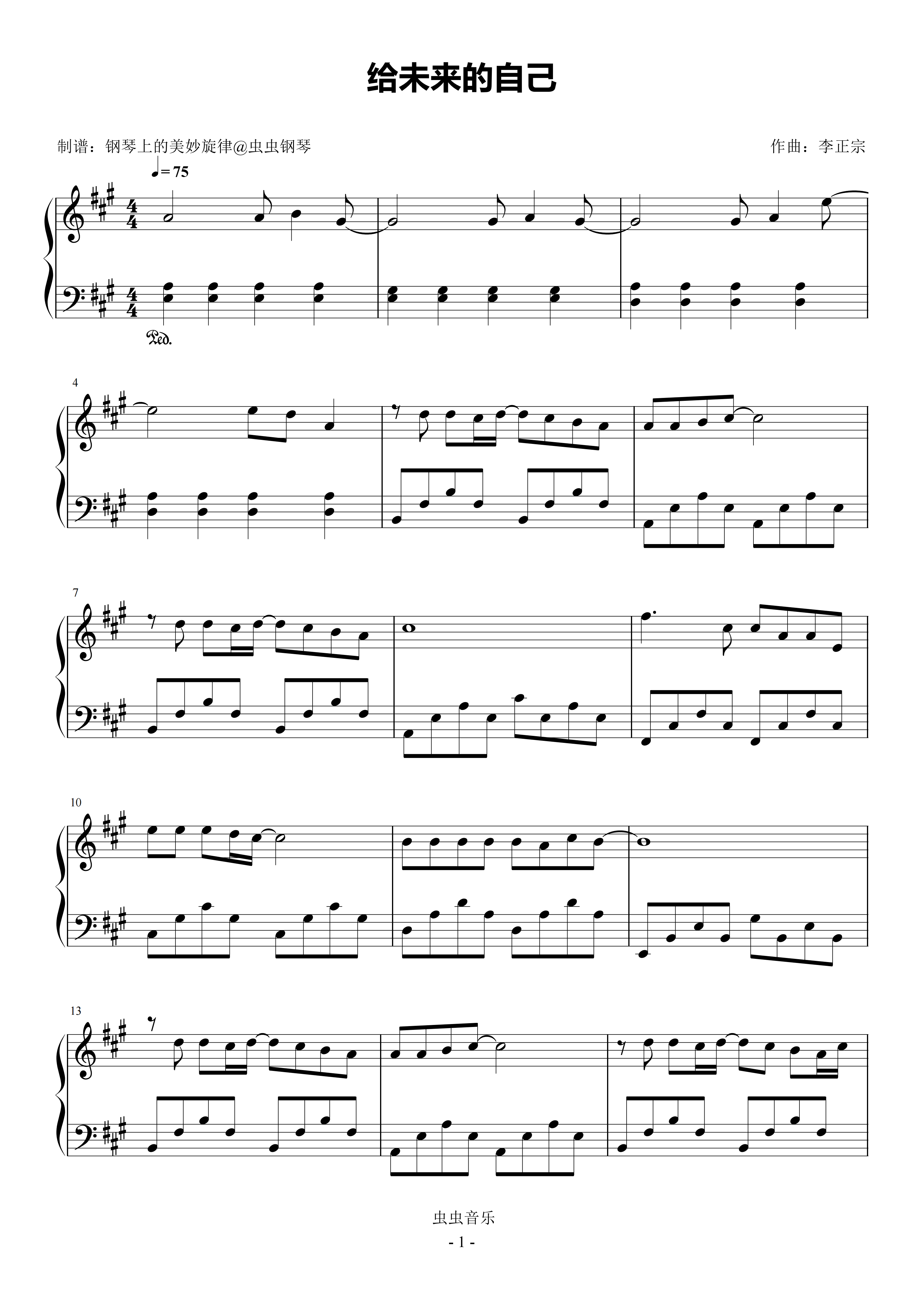 钢琴谱:给未来的自己 原调简易版 梁静茹
