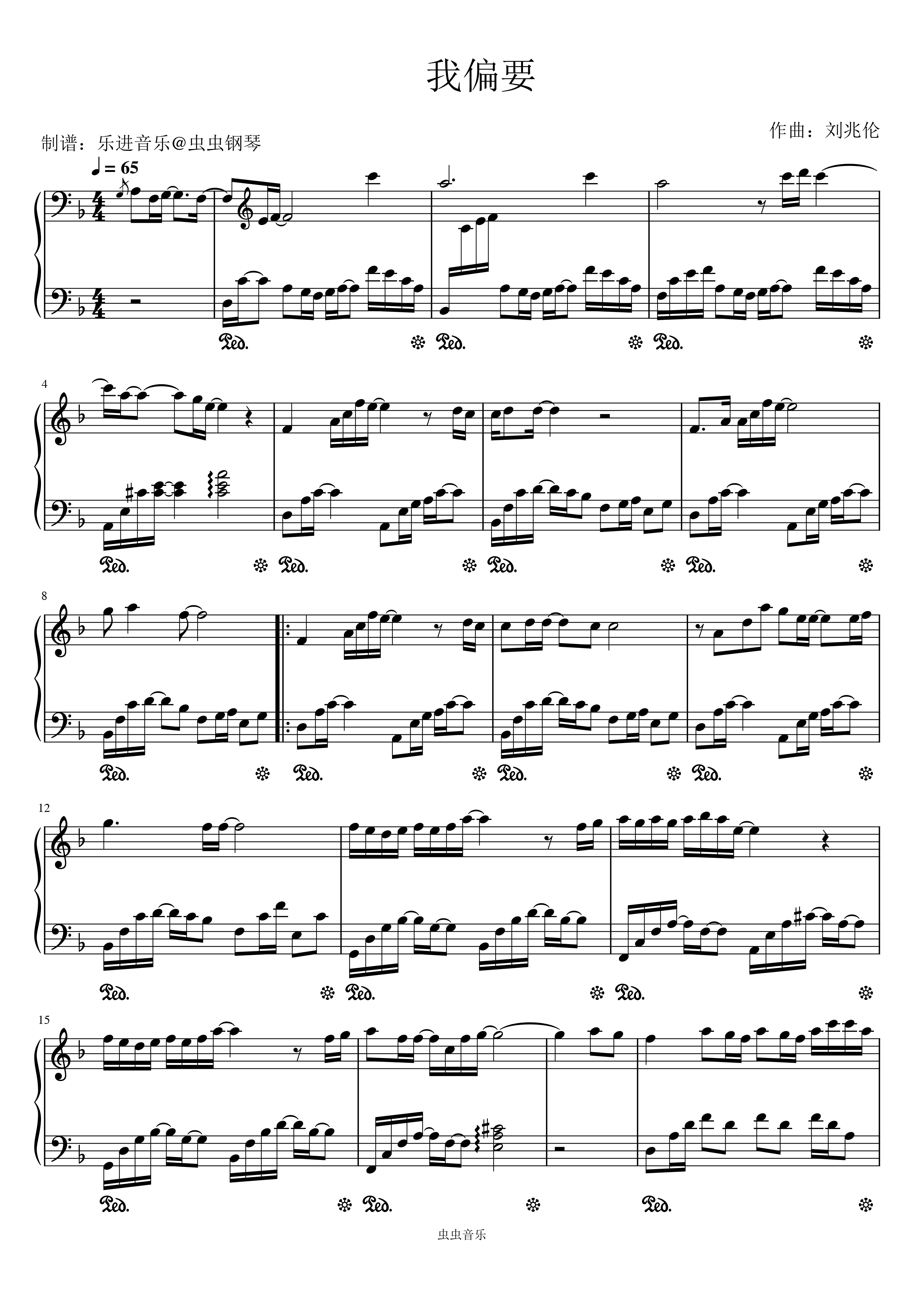 • 偏不钢琴简谱 Ab调 数字双手 葛大为