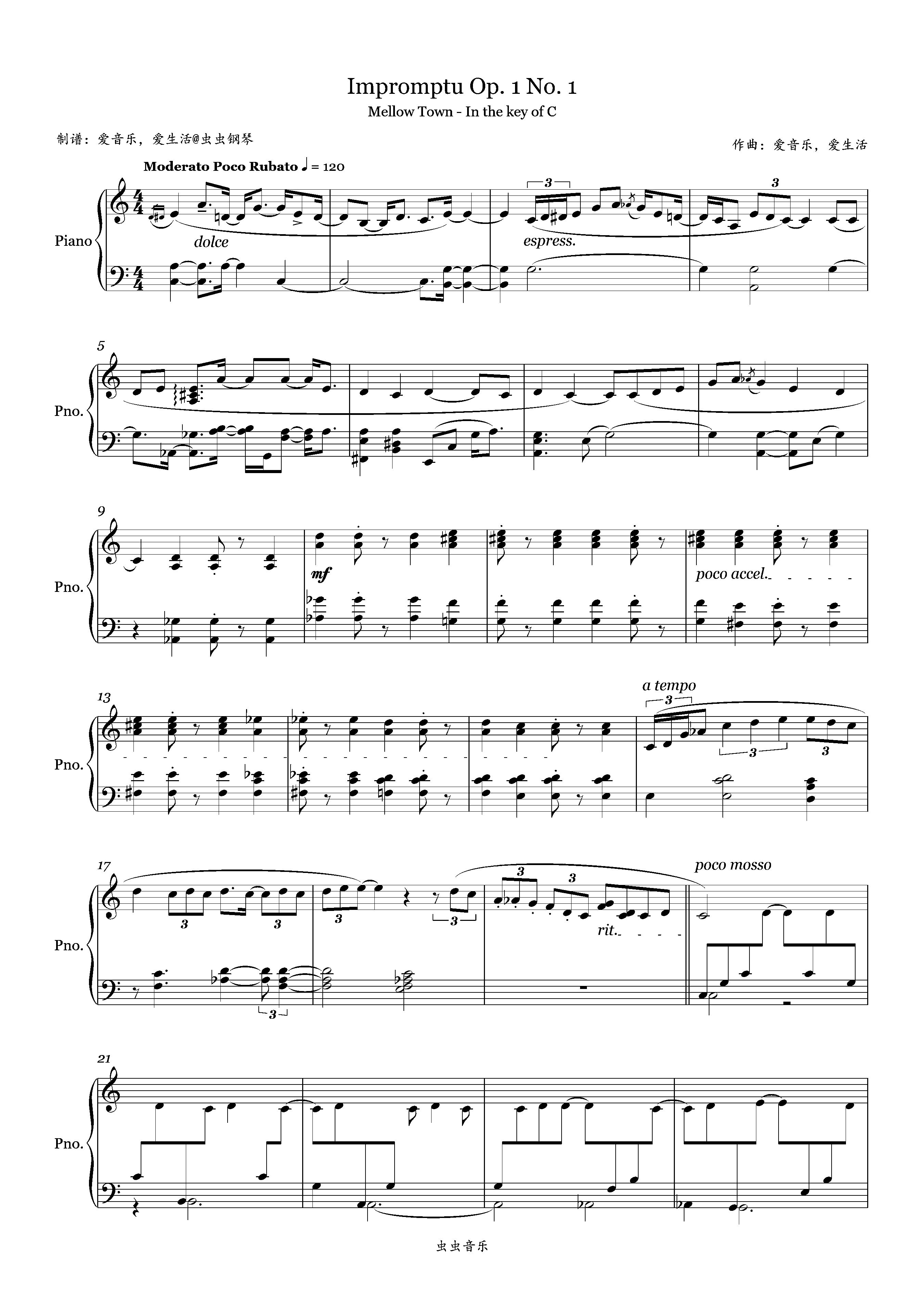 钢琴谱:梅洛镇(Mellow Town)C大调即兴曲 Op.1 No.1