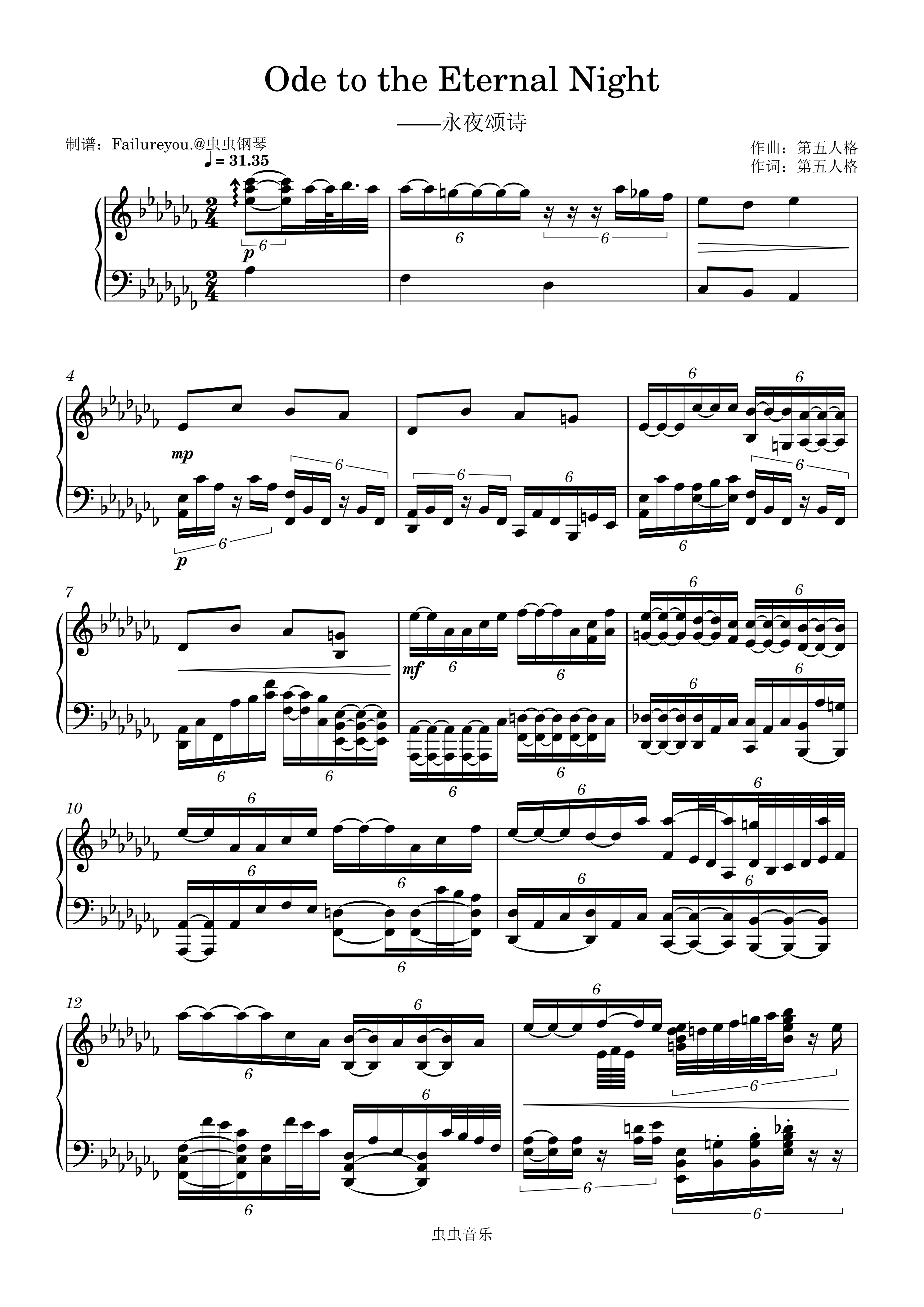Ode to the Eternal Night(永夜颂诗)钢琴简谱 数字双手 第五人格