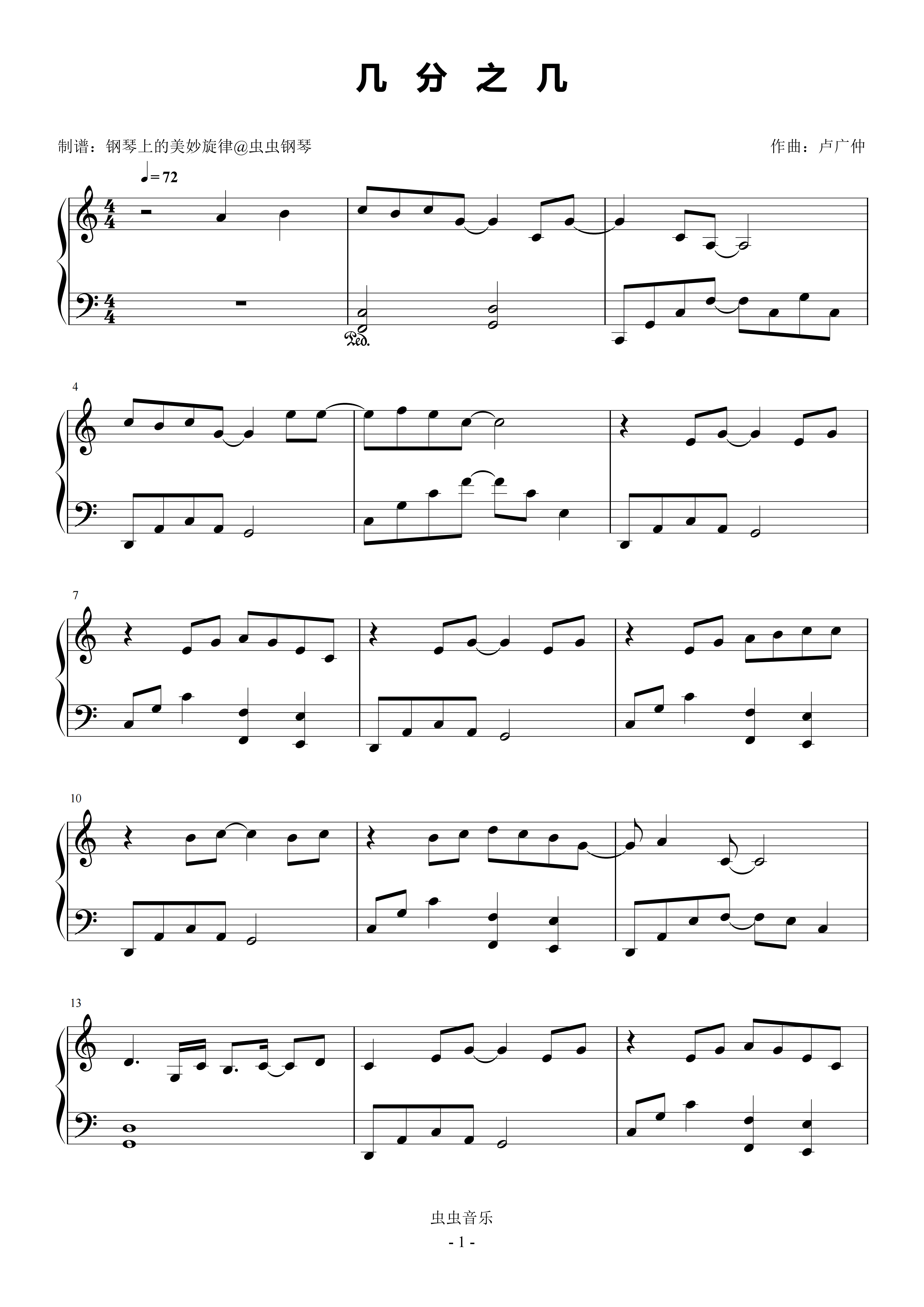 • 几分之几钢琴简谱 C调 数字双手 卢广仲
