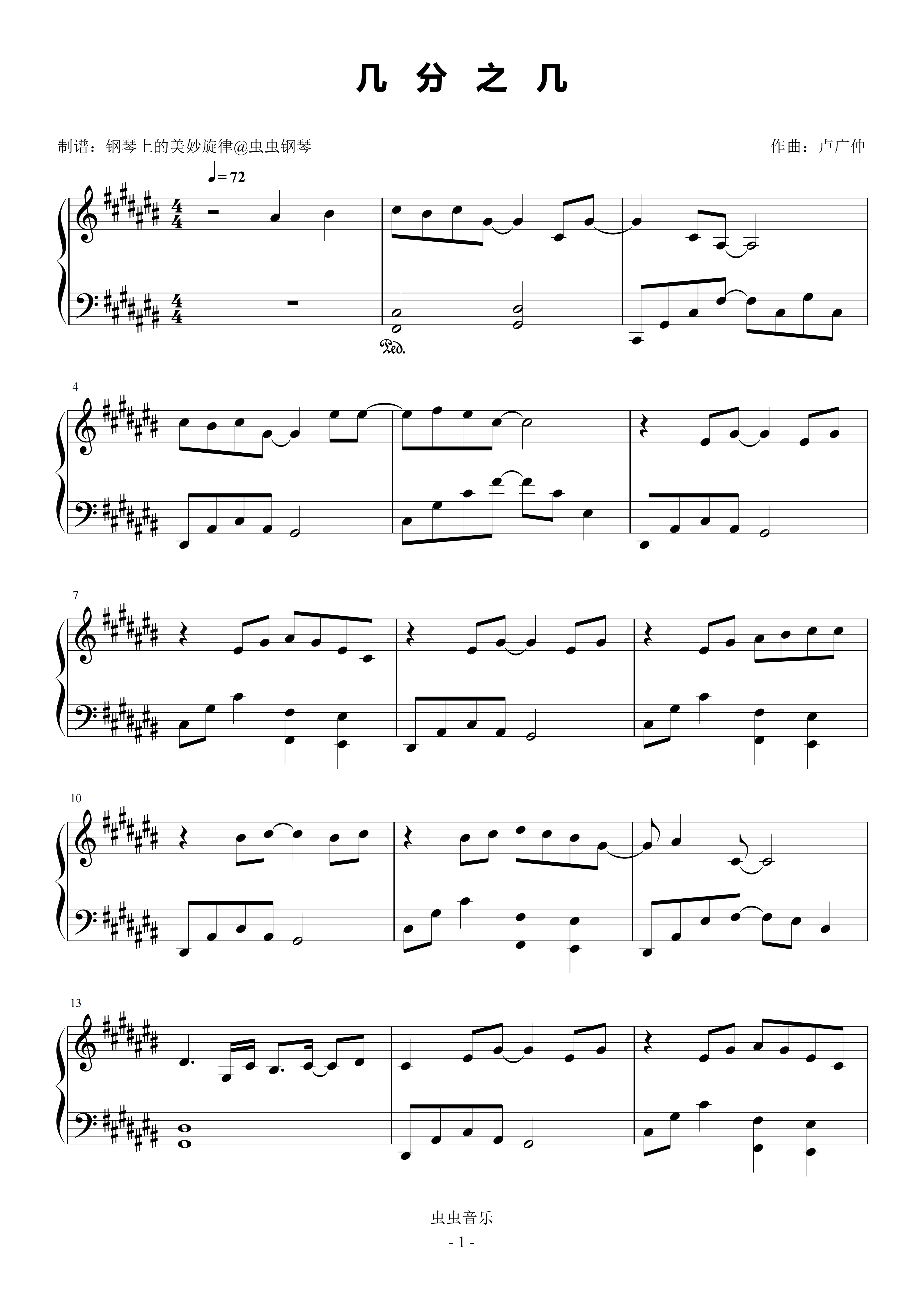 • 几分之几钢琴简谱 C调 数字双手 卢广仲