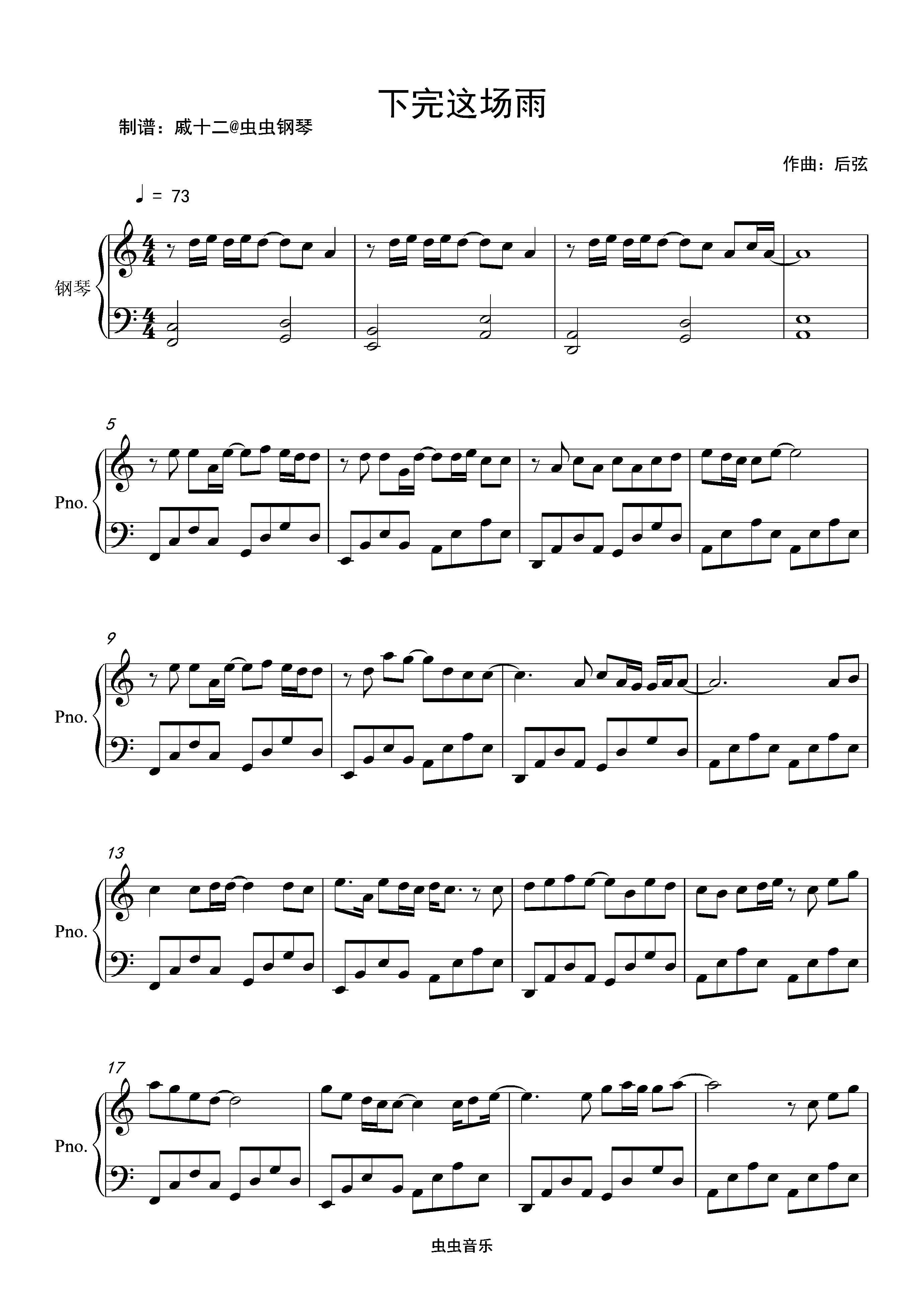 • 六月的雨钢琴简谱 C调 数字双手 薛永嘉