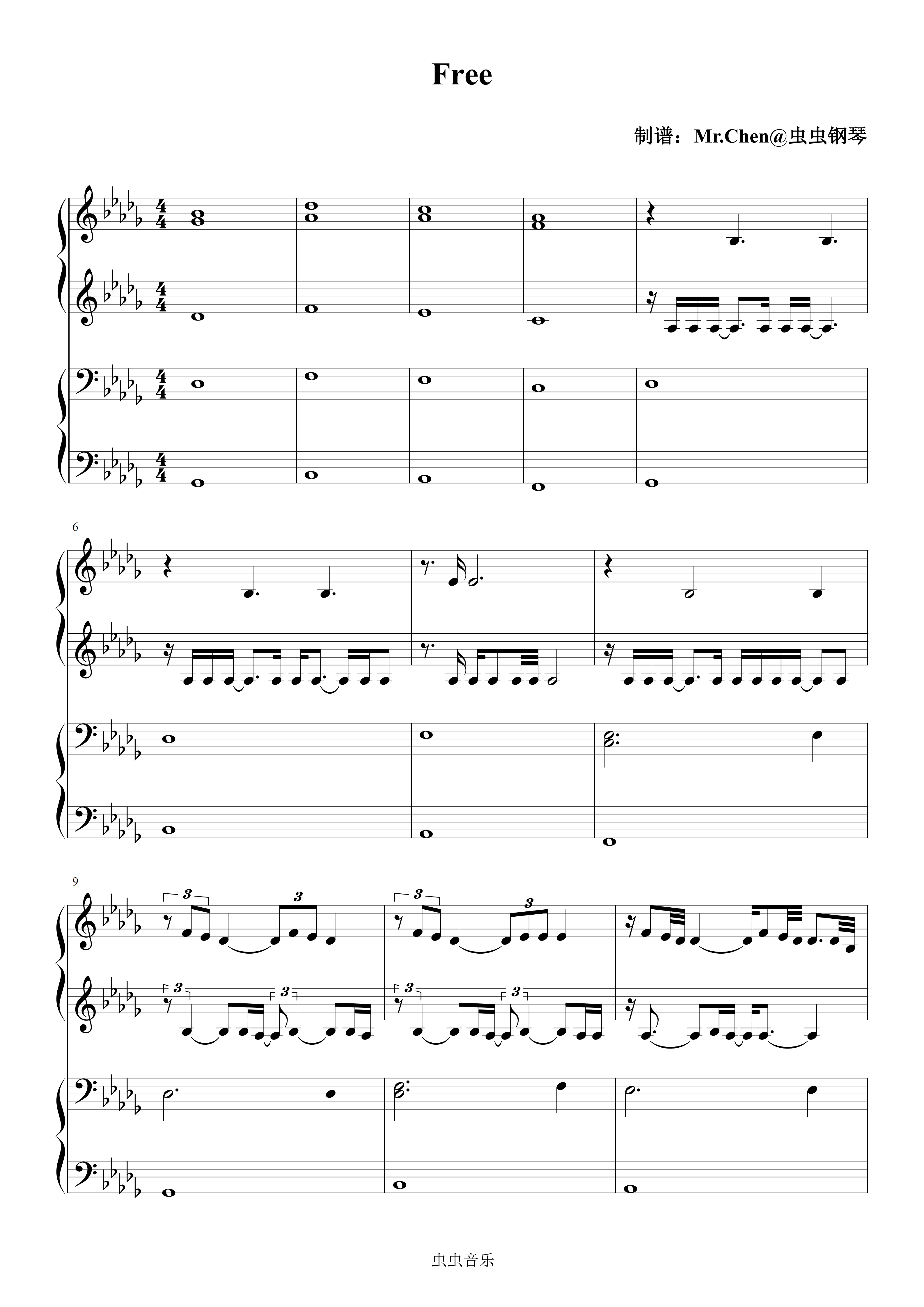 钢琴谱:Free (四手联弹)- 动画电影《KPOP:猎魔女团》插曲